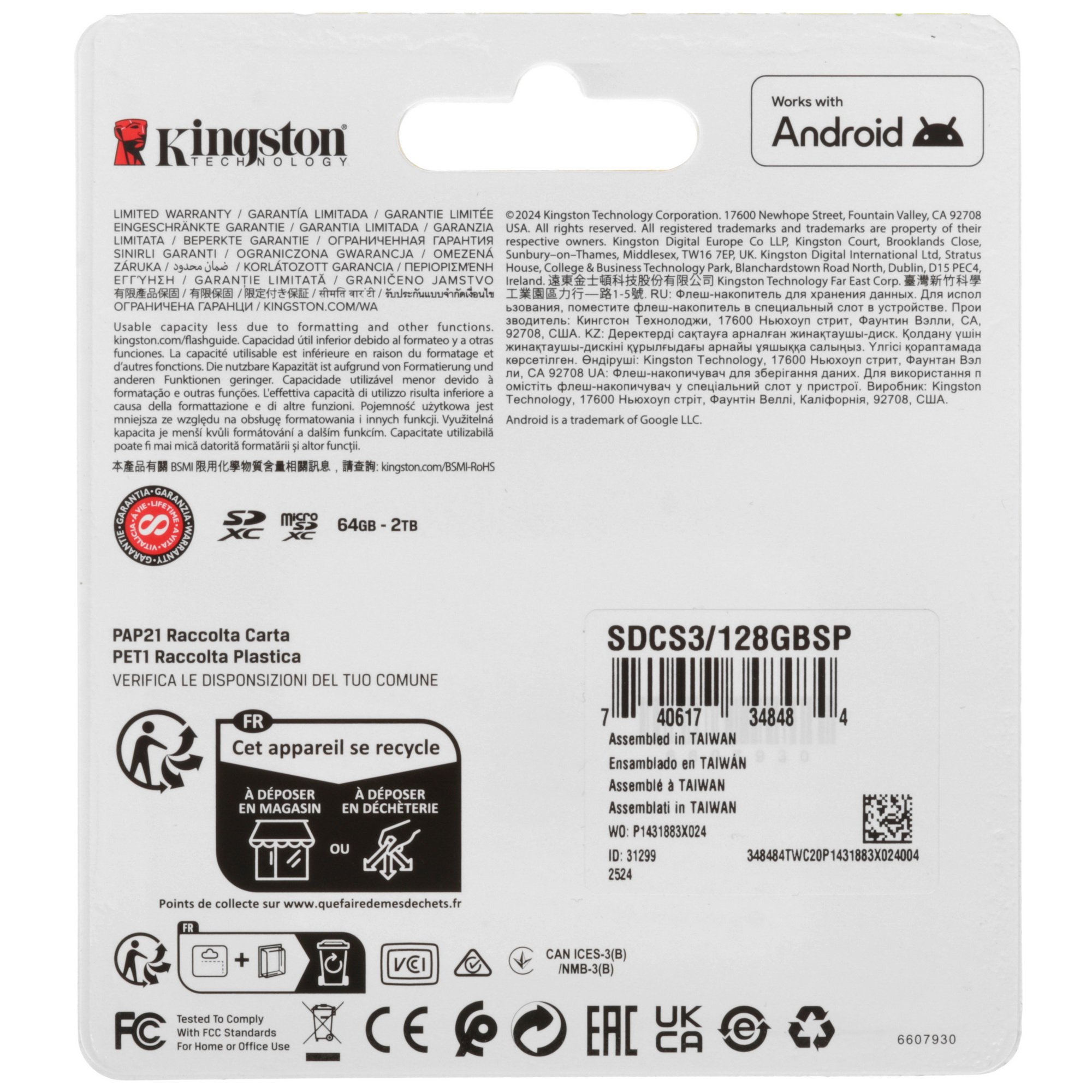 Карта памяти Kingston microSDXC 128 ГБ [SDCS3/128GBSP] рассчитана на эксплуатацию при температуре от -40 до 85 °C. Максимальная скорость чтения равна 150 МБ/с.
