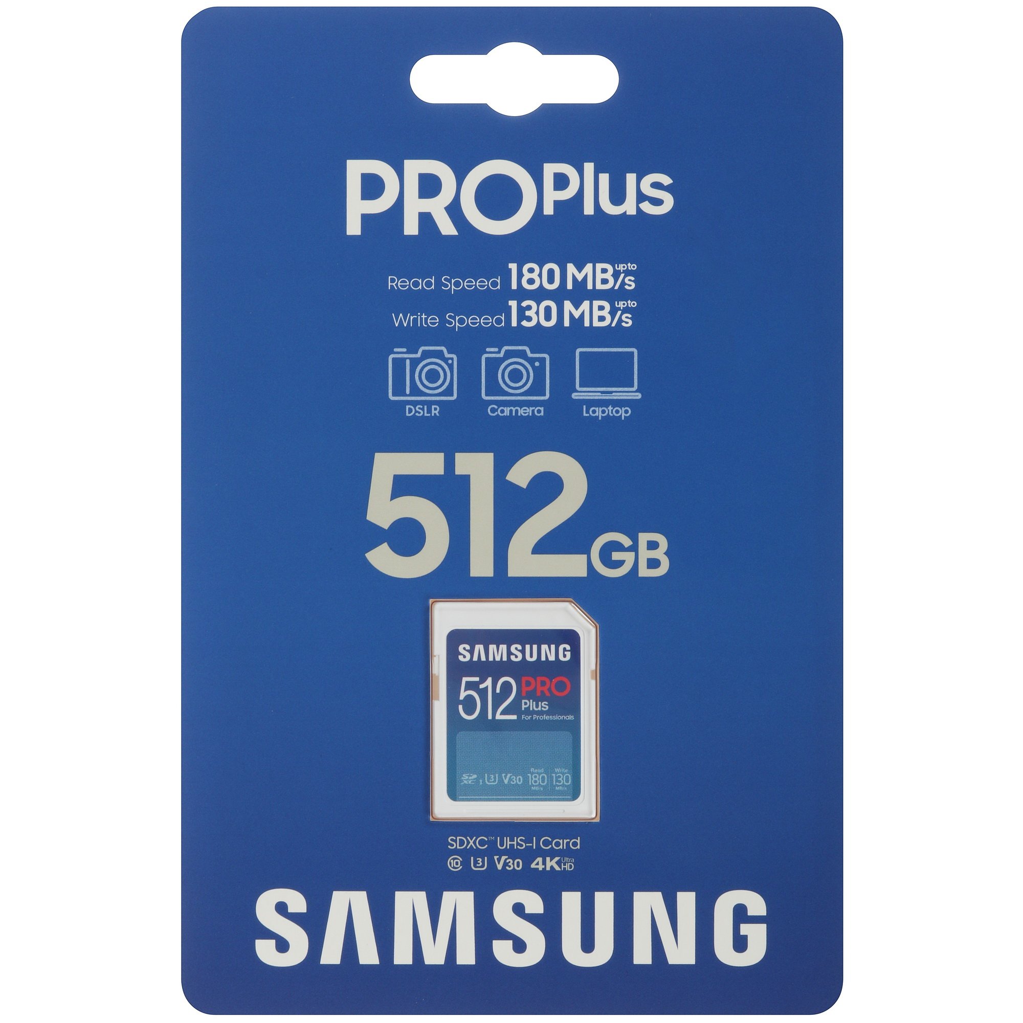 Флеш карта SDXC 512GB Samsung PRO Plus Class 10, A2, V30, W130МБ/с, R180МБ/с, <MB-SD512S/APC>