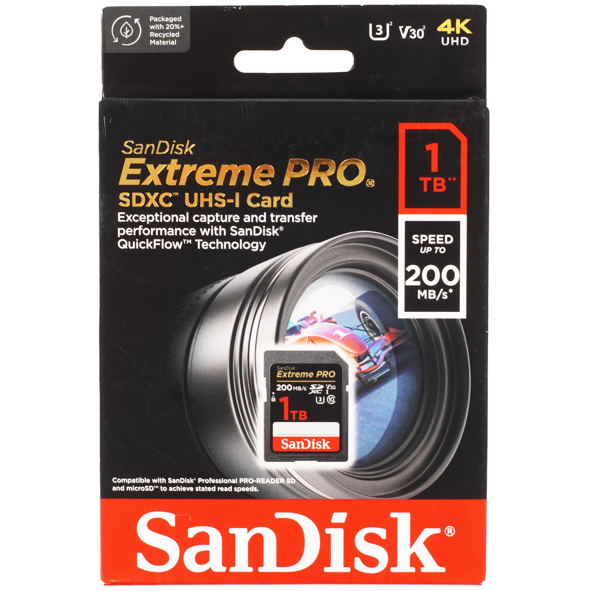 Карта памяти SanDisk Extreme Pro [SDSDXXD-1T00-GN4IN] типа SDXC позволяет записывать и хранить данные общим объемом 1000 ГБ. Классы Class 10, UHS Class 3 и Video Class 30 обеспечивают запись со скоростью 140 Мбайт/сек и чтение с максимальной скоростью 200 Мбайт/сек.