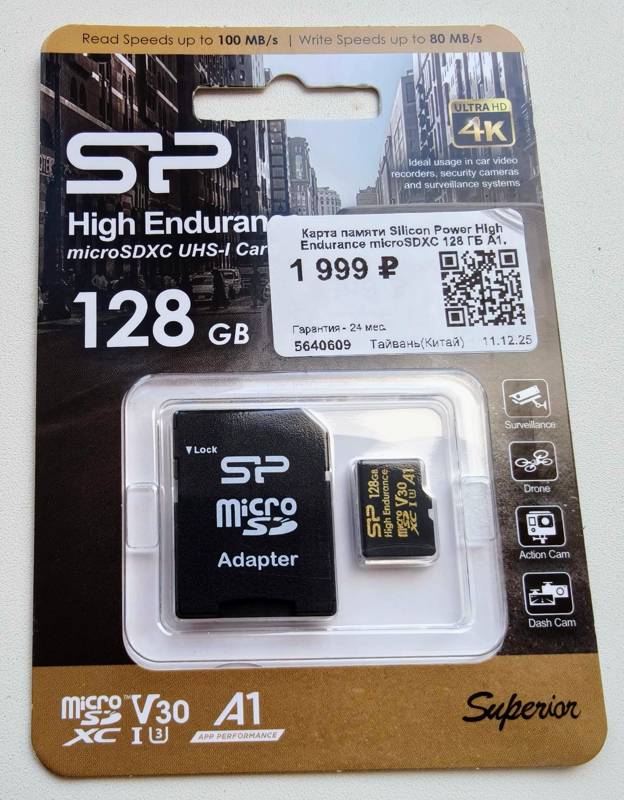 Карта памяти Silicon Power High Endurance в форм-факторе microSDXC обеспечит смартфон, планшет или любое другое мобильное устройство 128 ГБ свободной памяти для хранения разнообразных файлов. Благодаря поддержке A1, UHS Class 3 и Video Class 30 модель подойдет для использования в фото- и видеокамерах для записи видео в высоком разрешении. Особенностью карты памяти Silicon Power High Endurance является скорость записи до 80 Мбайт/сек и скорость чтения до 100 Мбайт/сек. Накопитель данных стабильно функционирует при температуре окружающей среды в диапазоне от -25 °C до 85 °C.