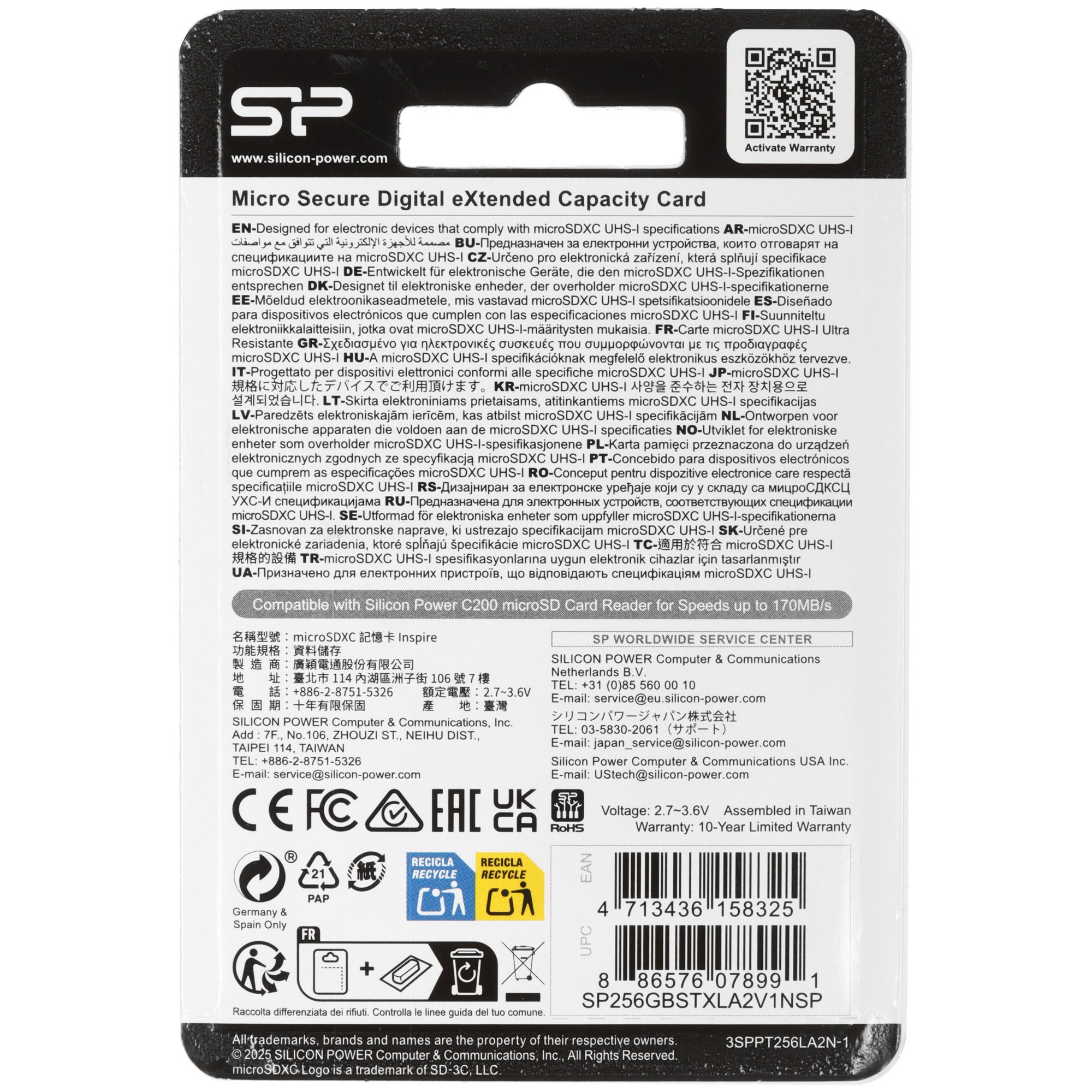 Карта памяти Silicon Power Inspire microSDXC 256 ГБ [SP256GBSTXLA2V1N] рассчитана на использование в широком температурном диапазоне – от 0 до 70 °C. Максимальная скорость чтения равна 170 МБ/с, а максимальная скорость записи – 150 МБ/с. В комплекте есть адаптер на SD.