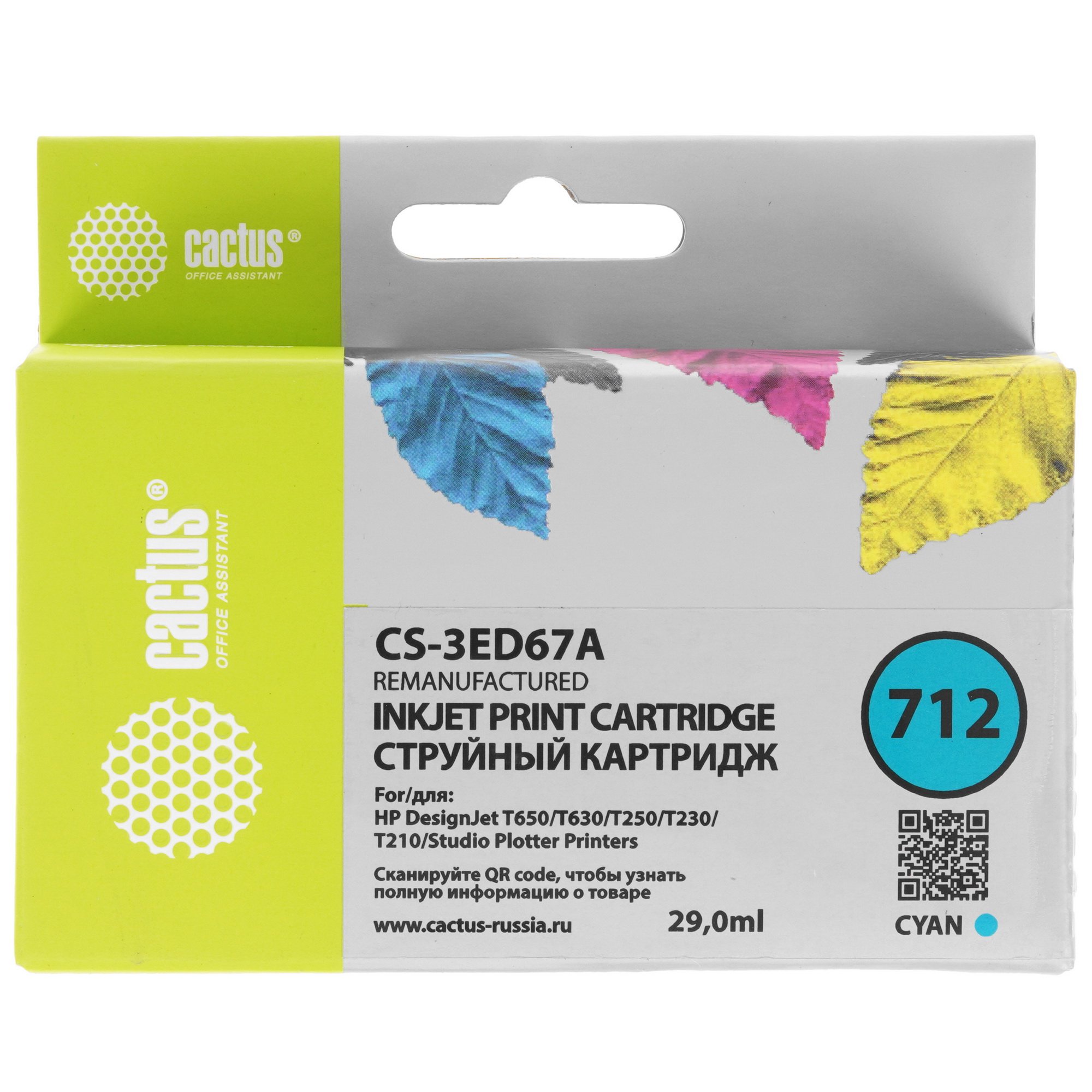 Картридж струйный Cactus CS-3ED67A 712 голубой (29 мл) для HP DJ T230/630