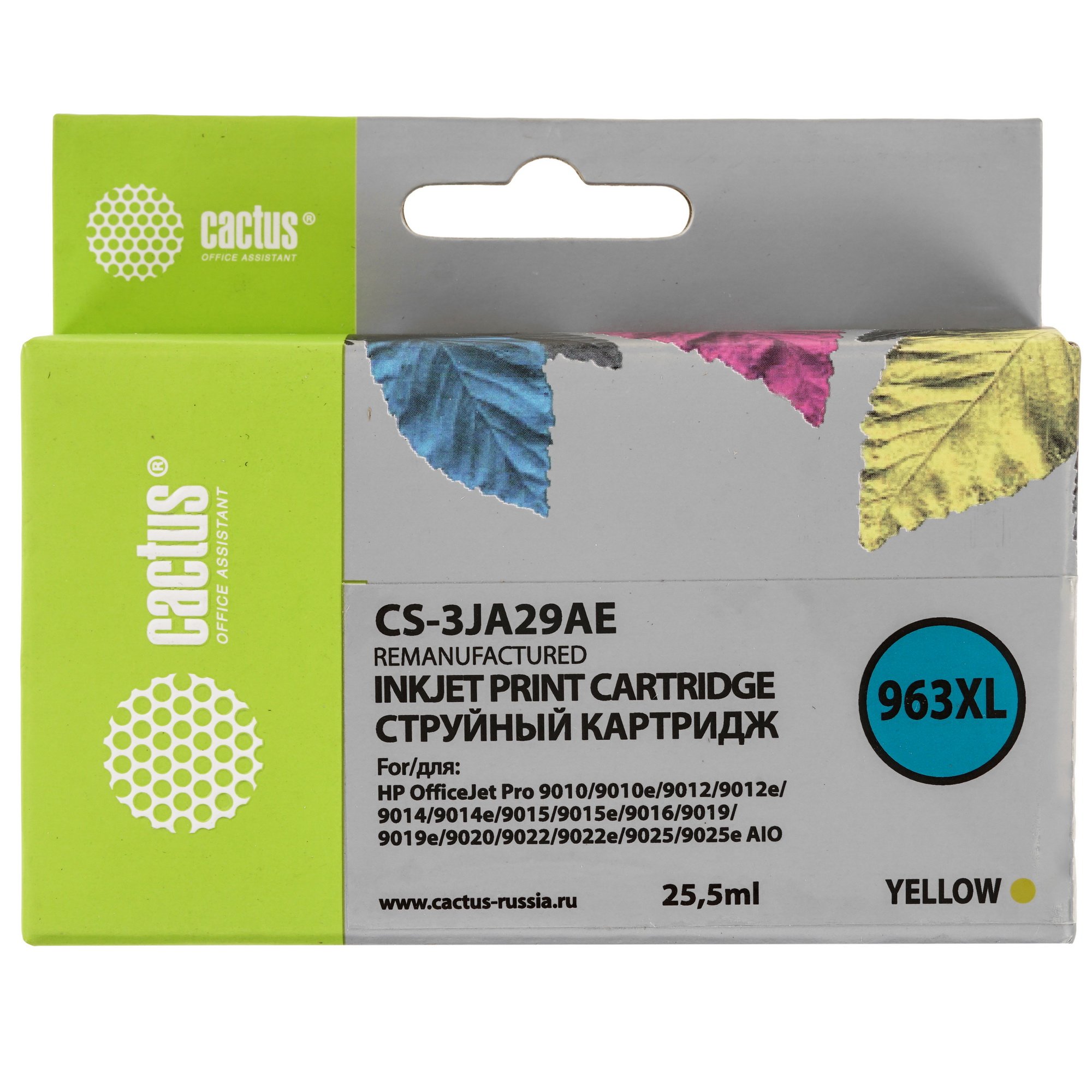 Картридж струйный Cactus 963XL CS-3JA29AE (есть ограничения по прошивке) желтый (25.5 мл) для HP OfficeJet Pro 9010/9010e/9012/9014/9015/9016/9019