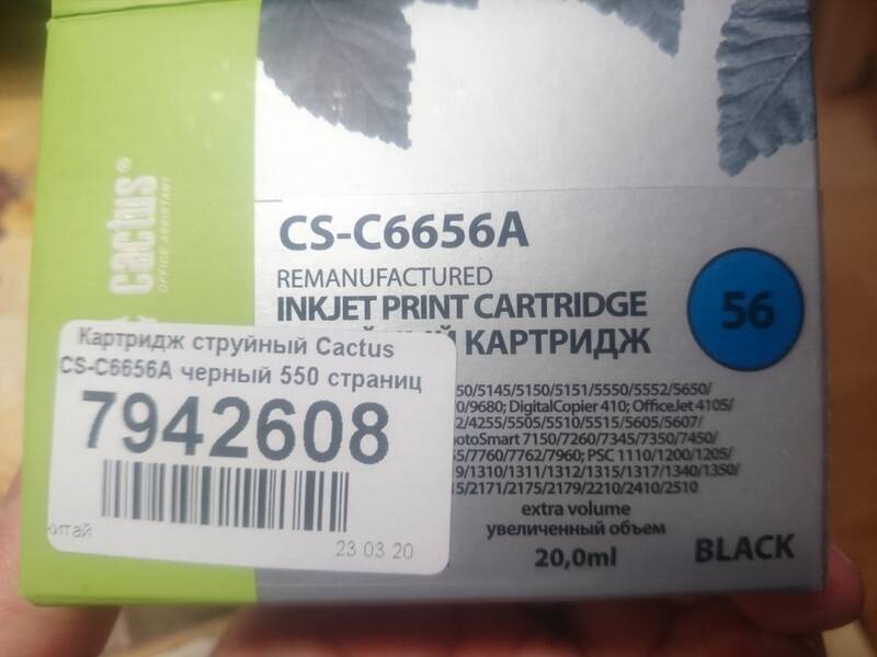Картридж струйный Cactus CS-C6656A №56 черный (20 мл) для HP DeskJet 450/5145/5150/5151/5550/5552