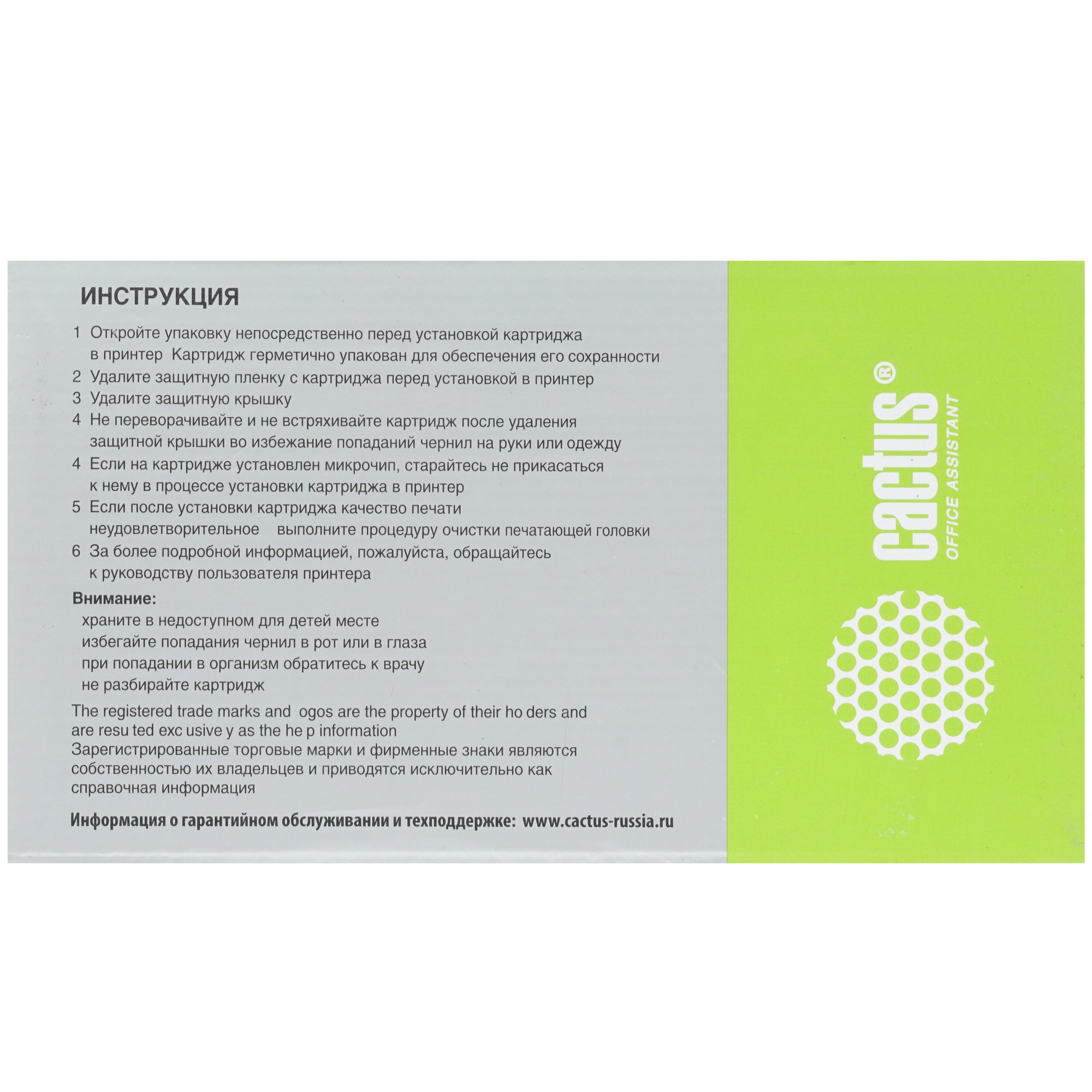 Картридж струйный Cactus CS-C9374 имеет объем, составляющий значительные 130 мл. Цвет чернил – серый. Сопутствующая информация о картридже (в том числе – данные о цвете и объеме) размещена на упаковке.