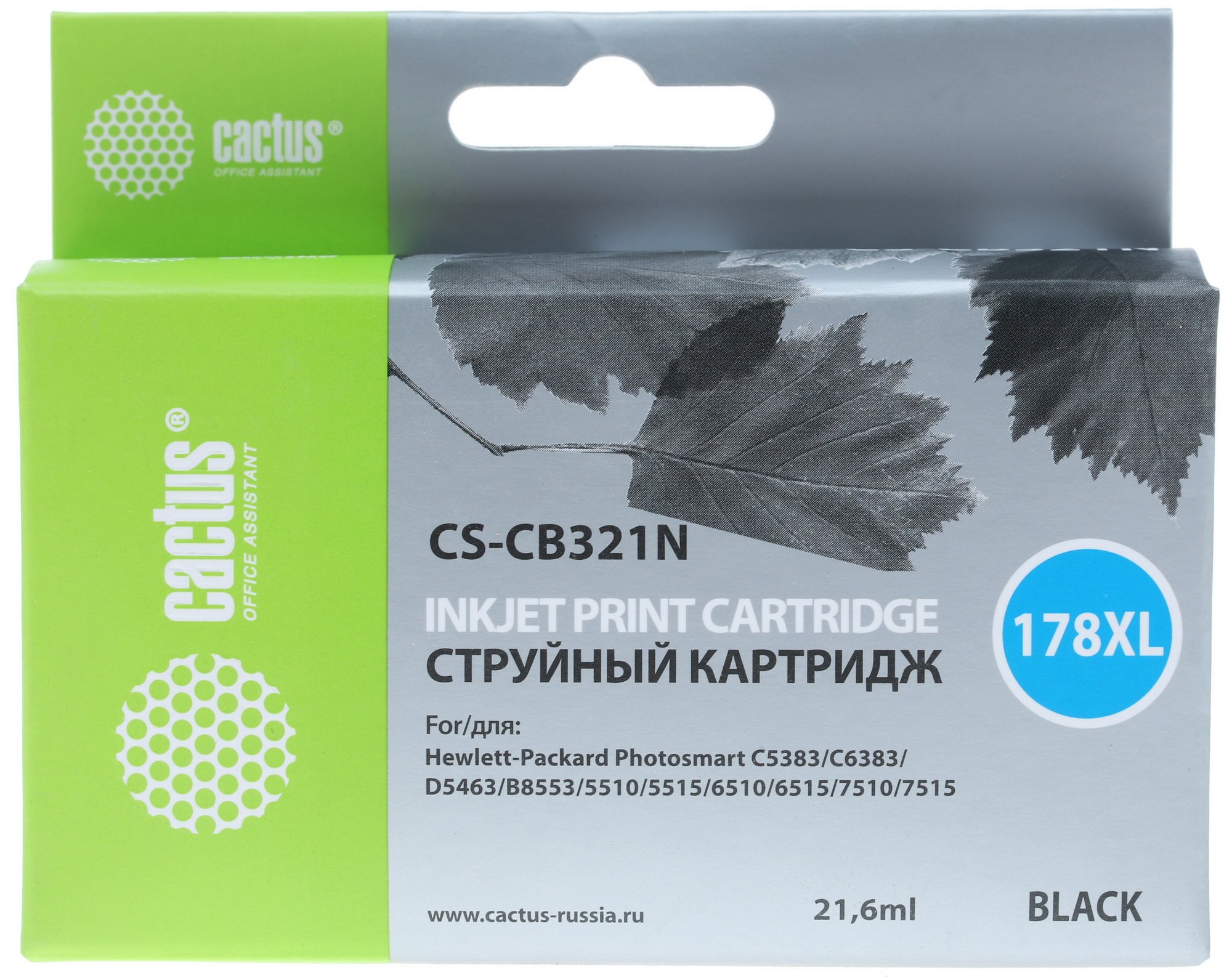 Картридж струйный Cactus CS-CB321N(CS-CB321) №178XL черный (21.6мл) для HP PS B8553/C5383/C6383/D5463