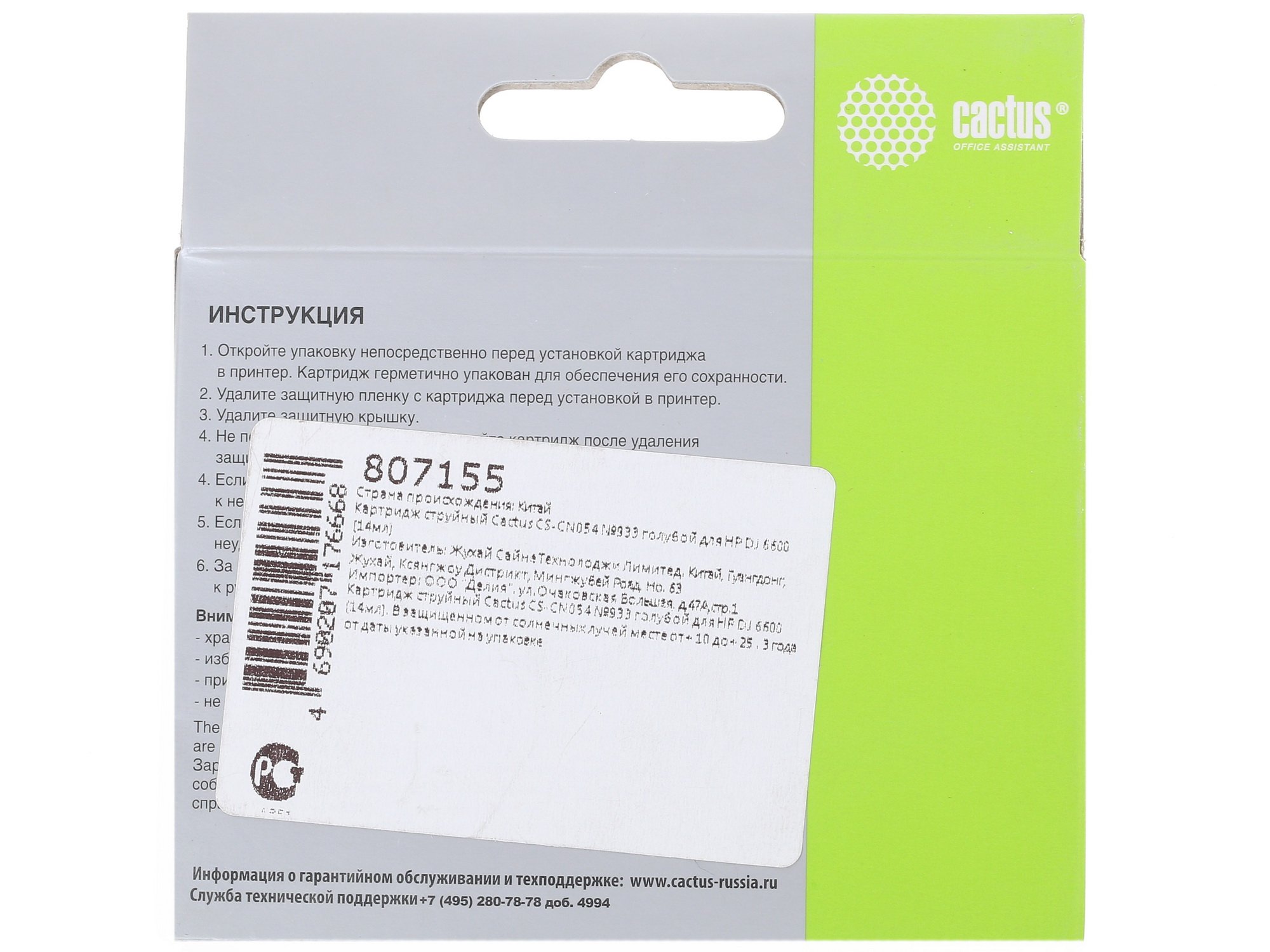 Картридж струйный Cactus CS-CN054 №933XL голубой (14 мл) для HP DJ 6600