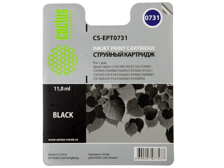Картридж струйный Cactus CS-EPT0731 черный (11,4 мл) для Epson Stylus С79/C110/СХ3900/CX4900/CX5900/CX7300/CX8300/CX9300