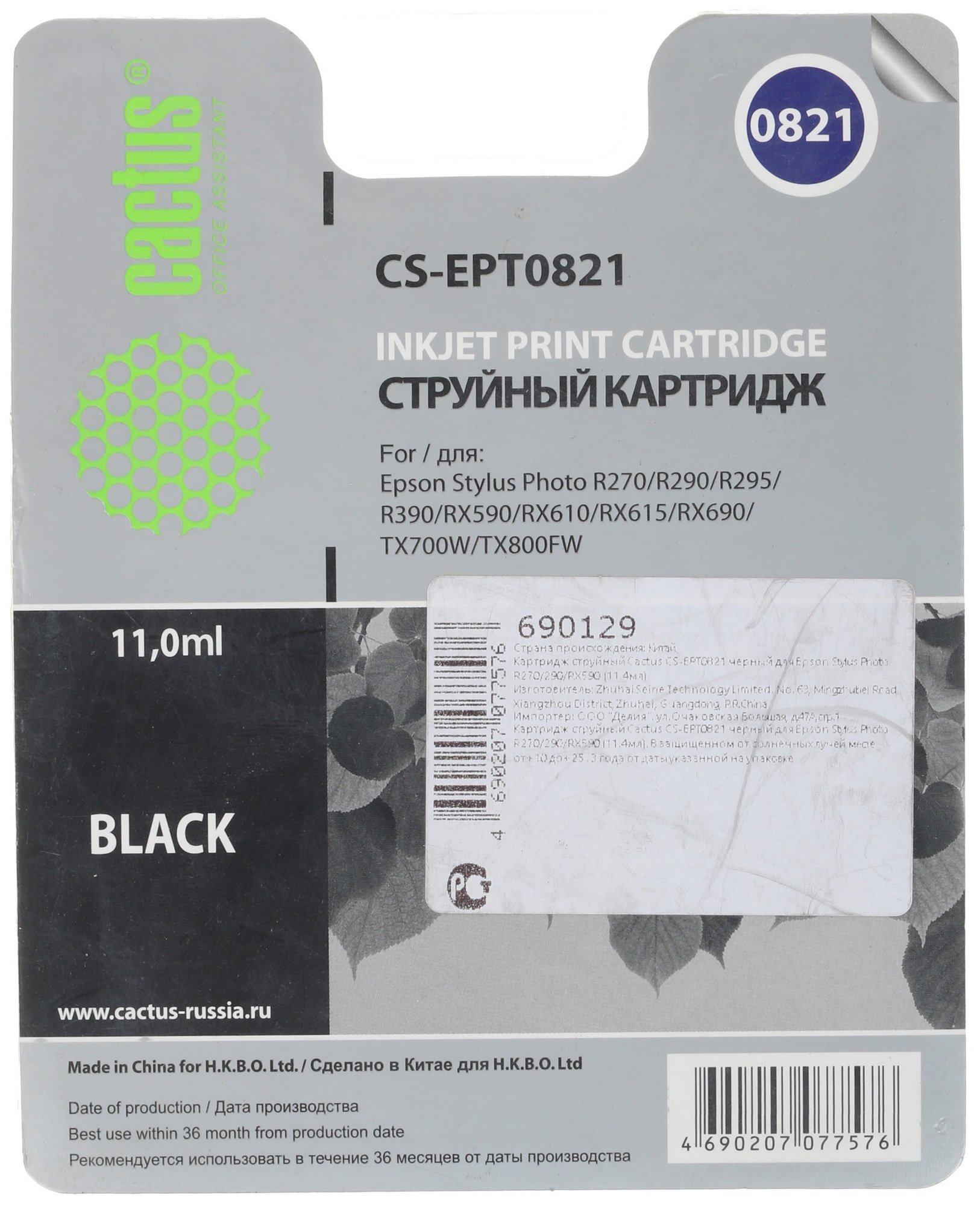 Картридж струйный Cactus CS-EPT0821 черный (13,8 мл) для Epson Stylus Photo R270/290/RX590