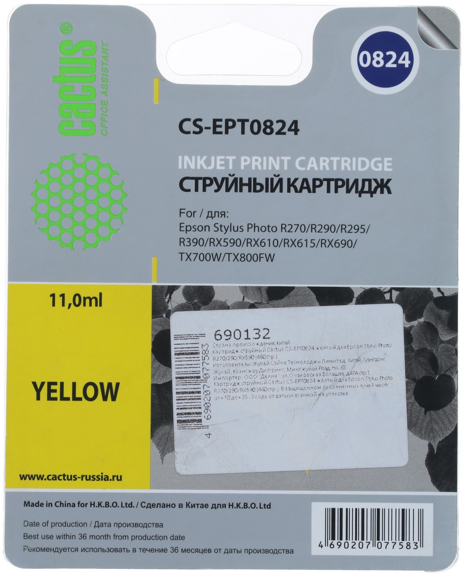 Картридж струйный Cactus CS-EPT0824 (T0824) желтый (13,8 мл) для Epson Stylus Photo R270/290/RX590