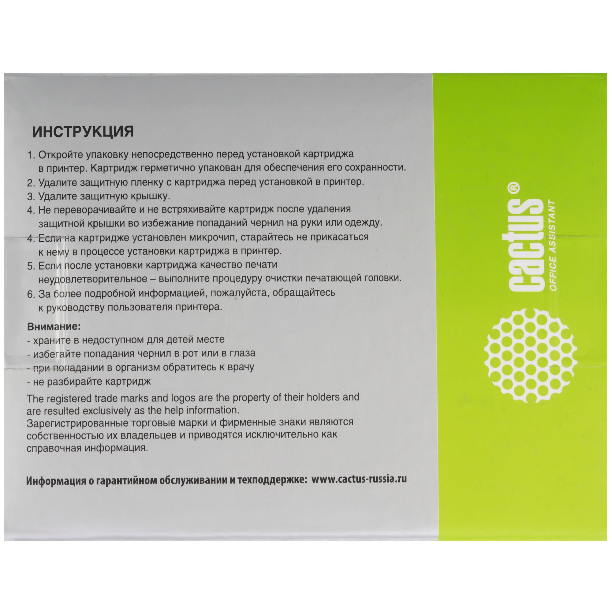 Cactus CS-EPT46S3 T46S3 герметично упакован для защиты от случайного рассыпания чернил. Перед установкой в принтер с устройства следует снять защитную пленку. После этого картридж нельзя переворачивать и встряхивать. Модель объемом 30 мл подходит для домашнего использования и офисной печати.