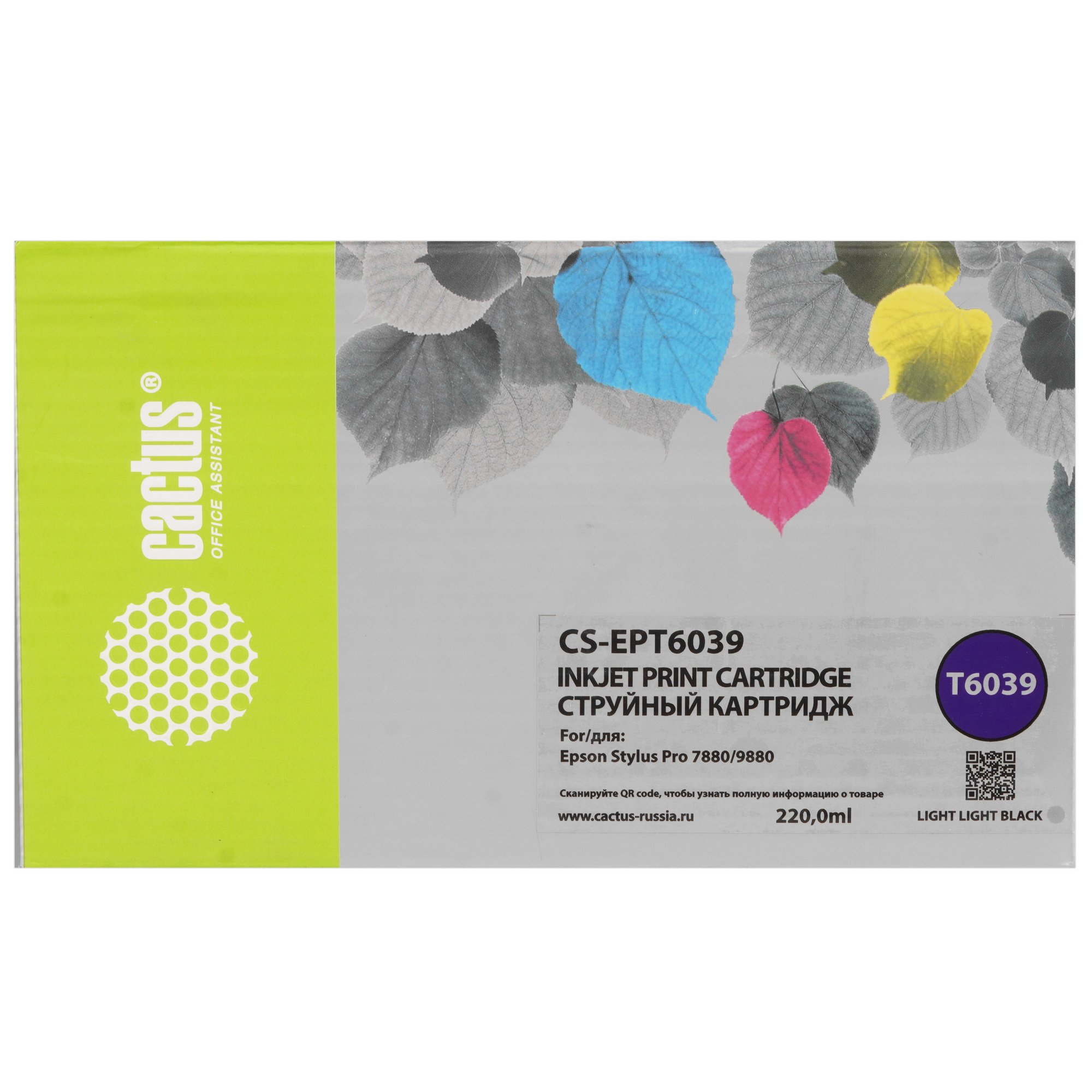 Картридж Cactus CS-EPT6039 – совместимый расходный материал для струйных принтеров и МФУ Epson. Изделие наполнено светло-серыми чернилами. Емкость картриджа составляет 220 мл. Количество в комплекте – 1.