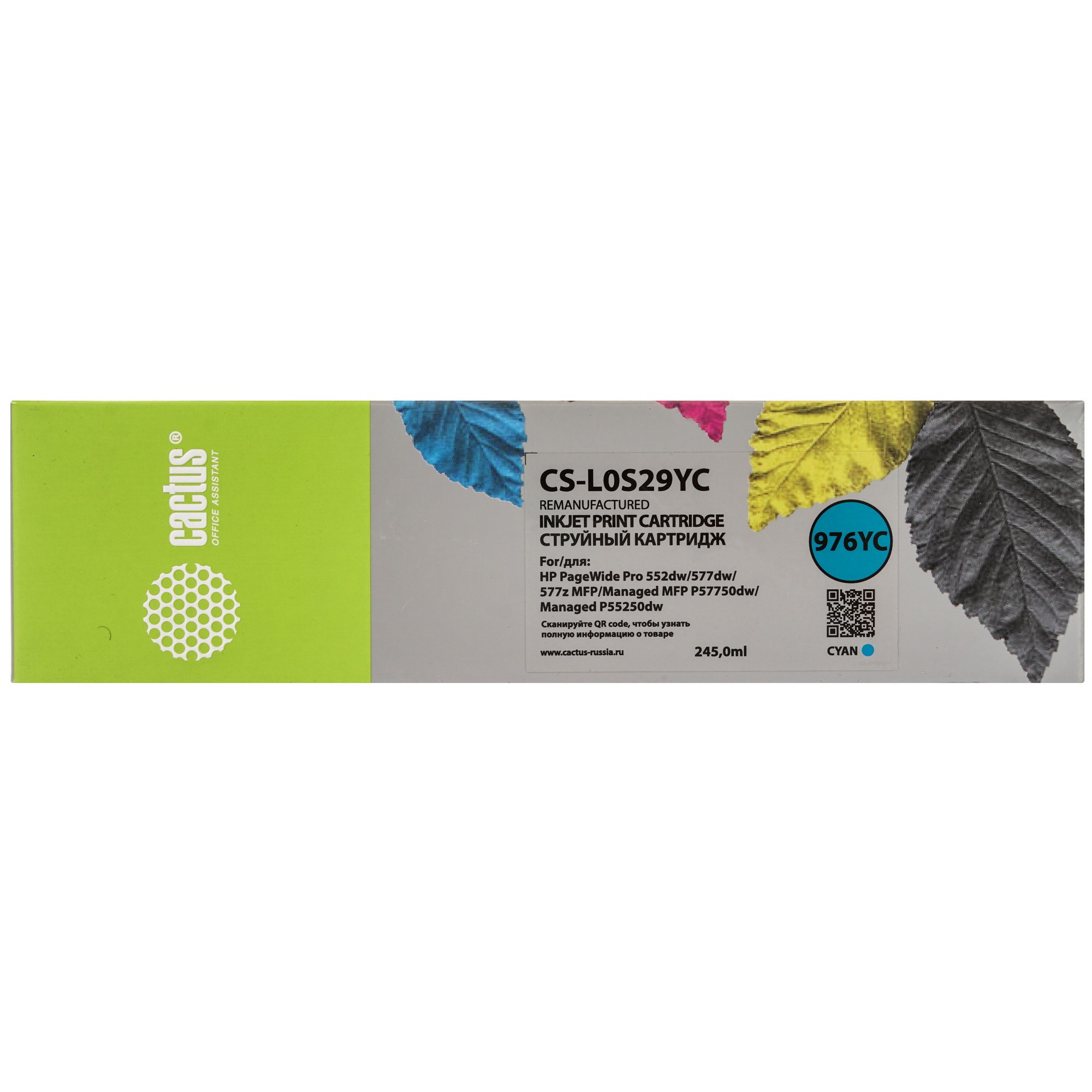 Картридж струйный Cactus CS-L0S29YC 976YC голубой (245мл) для HP PageWide P55250dw/P57750dw