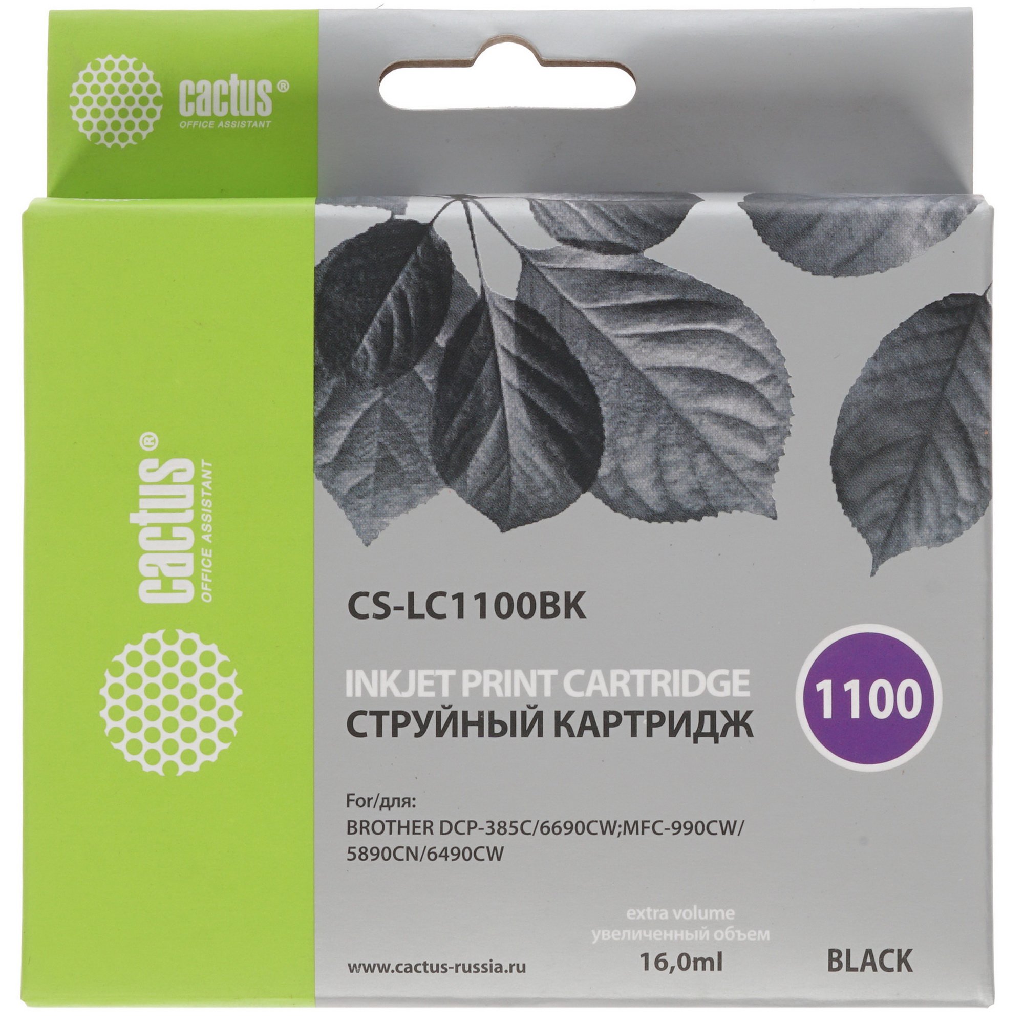 Картридж струйный Cactus CS-LC1100BK черный (16 мл) для Brother DCP-385c/6690cw/MFC-990/5890/5895/6490