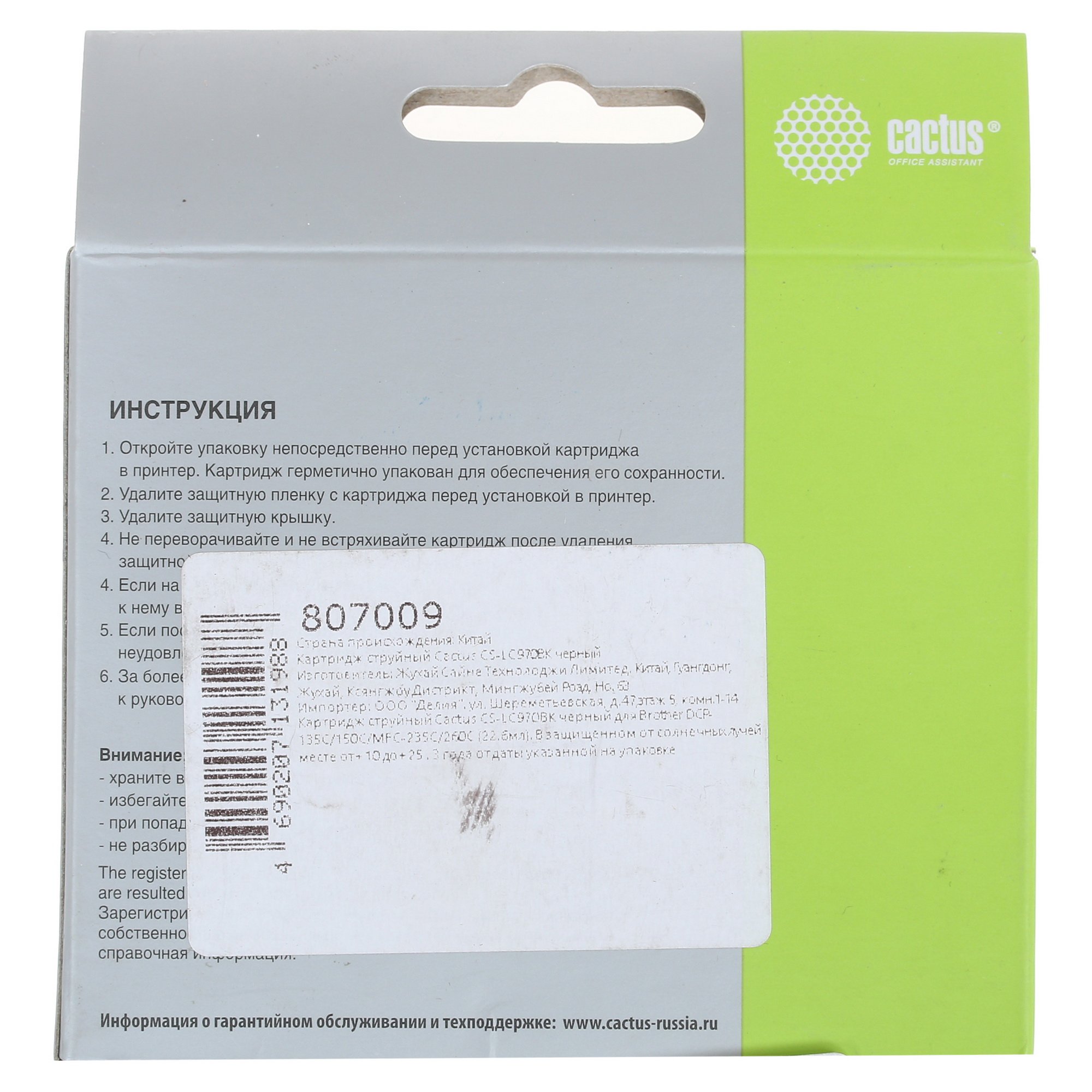 Картридж струйный Cactus CS-LC970BK произведен в соответствии со всеми техническими требованиями, что делает его полностью совместимым с определенными моделями принтеров Brother. Конструктивные особенности картриджа предполагают его простую самостоятельную установку в принтер. Кроме того, во время печати исключено появление каких-либо пятен или полос на бумаге. Это возможно благодаря наличию уплотняющей манжеты вокруг клапана, через который чернила попадают на печатающую головку.