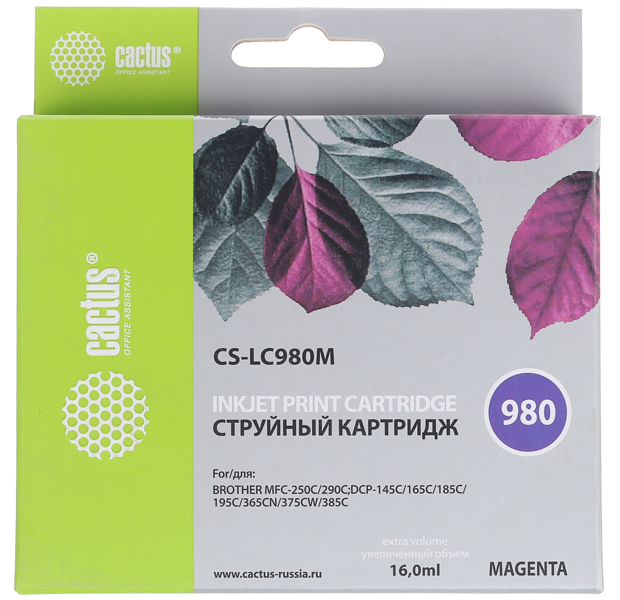 Картридж струйный Cactus CS-LC980M пурпурный (16 мл) для Brother DCP-145C/165C MFC-250C/290C