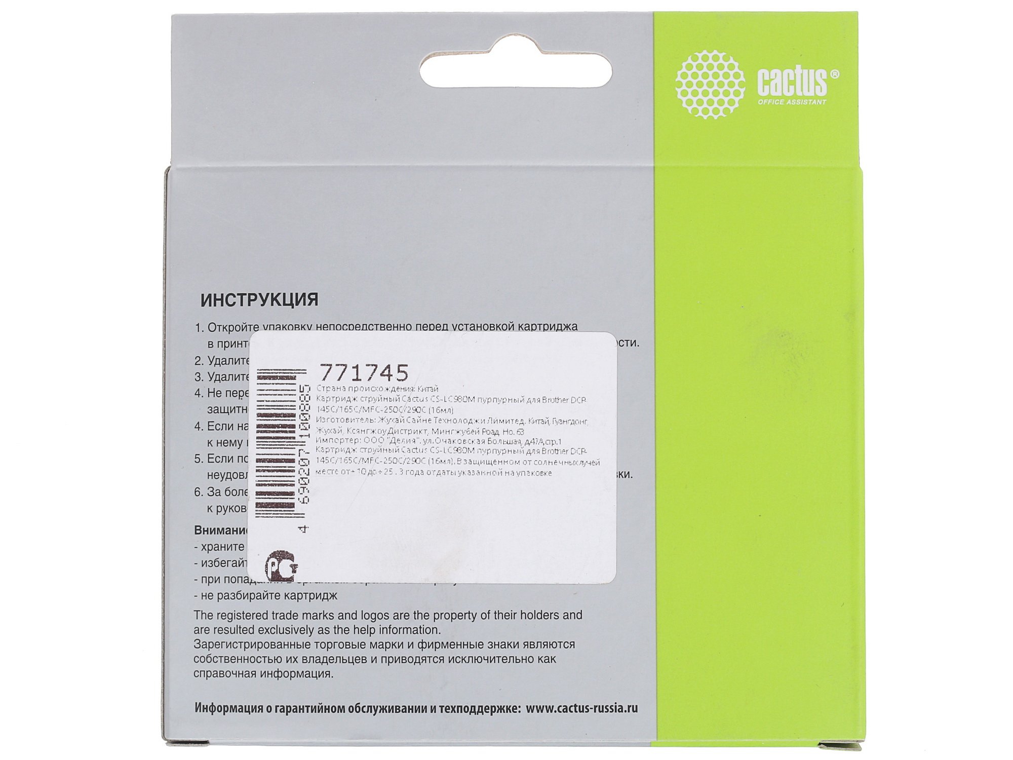 Cactus CS-LC980M является совместимым картриджем, который подходит для принтеров Brother довольно обширного модельного ряда. Картридж гарантирует стабильную печать и способствует сокращению числа неудачных отпечатков. Модель обеспечивает получение четких, долговечных отпечатков, отвечающих требованиям, предъявляемым к их качеству.