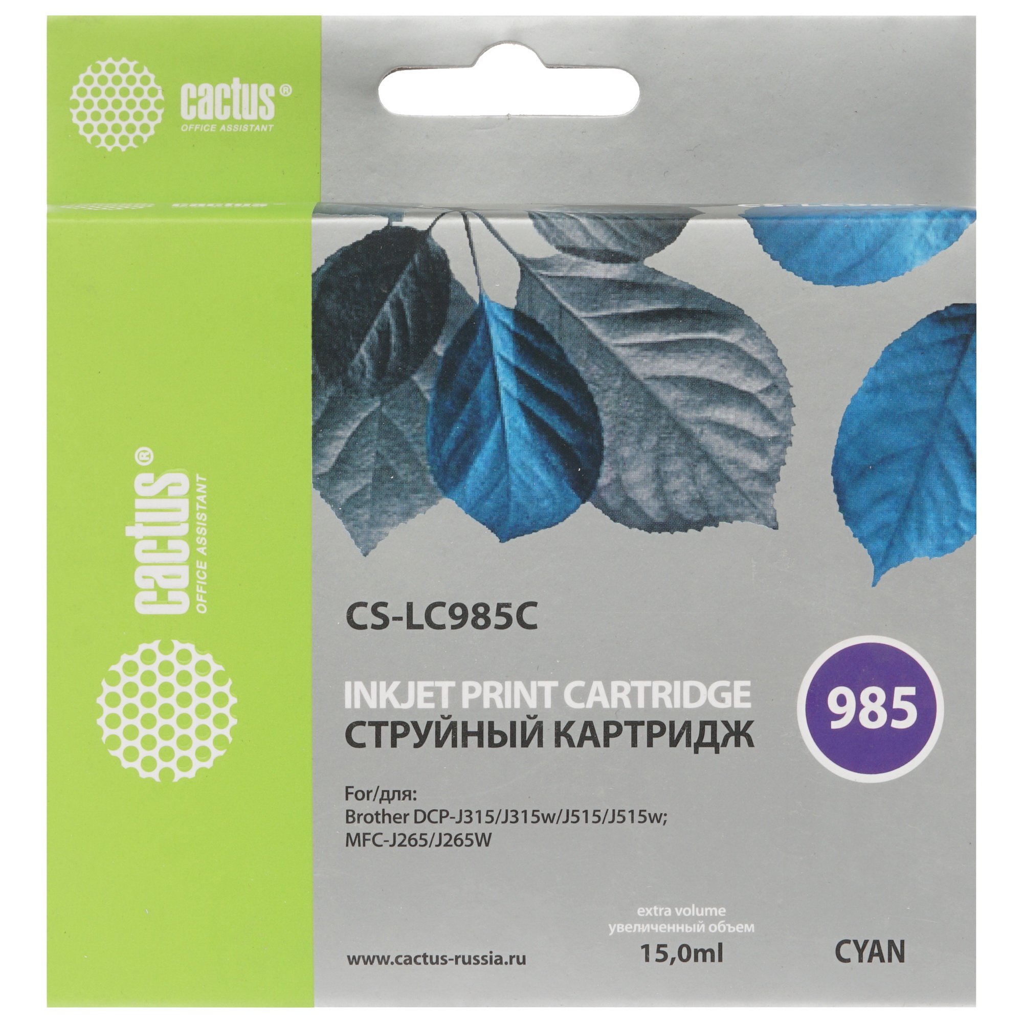 Картридж струйный Cactus CS-LC985C голубой (15 мл) для Brother DCPJ315W/DCPJ515W/MFCJ265W