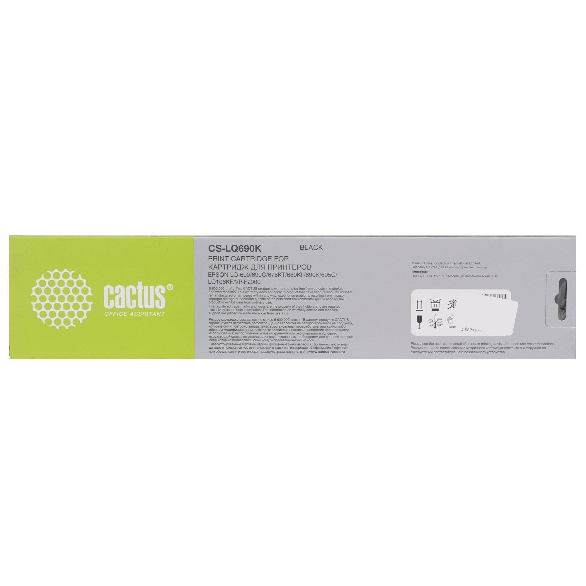Картридж матричный Cactus CS-LQ690K S015610 подходит для принтеров Epson 675KT, 680K, 690C, 690K, 695C, LQ-690, LQ106KF, VP-F20.