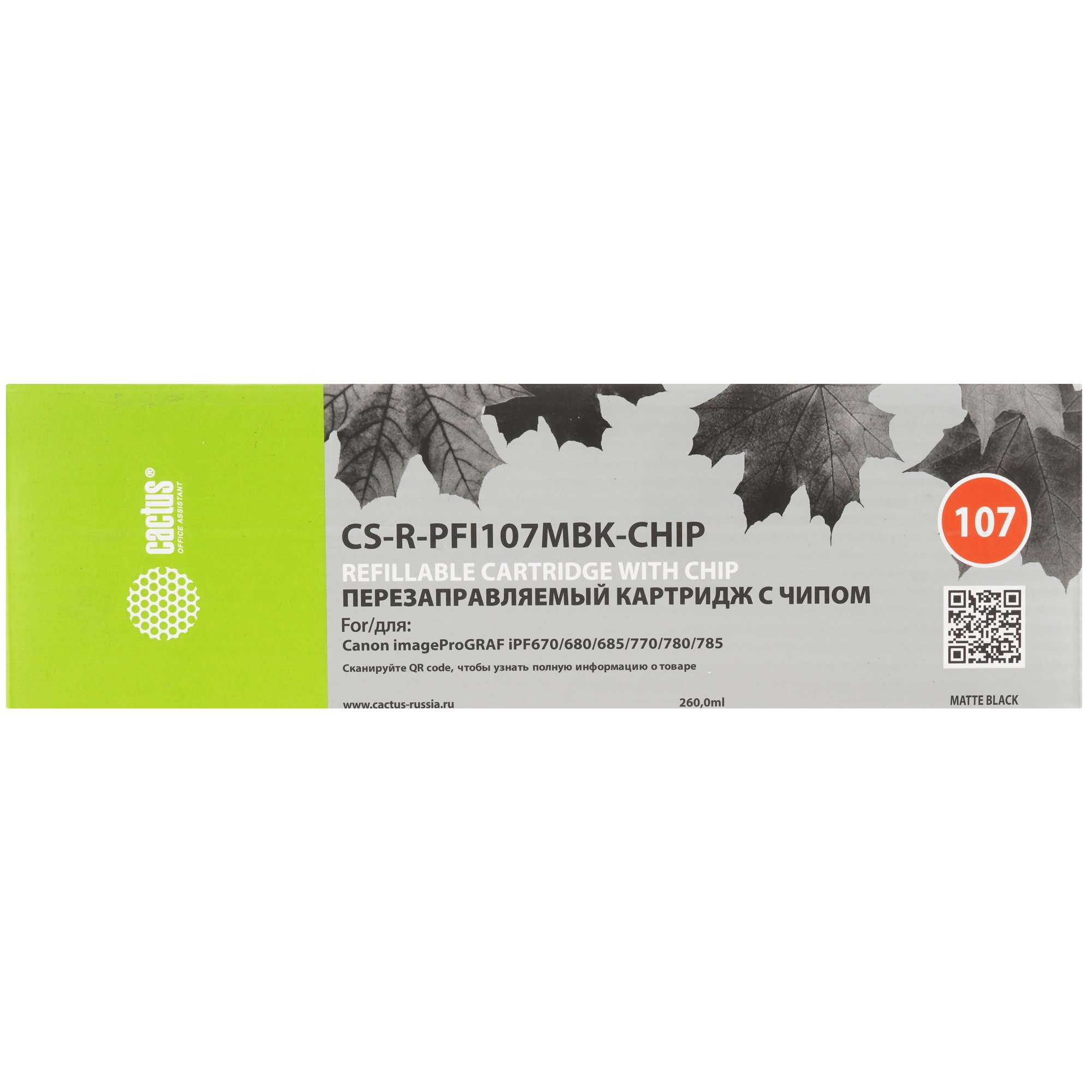 Картридж перезаправляемый струйный Cactus CS-R-PFI107MBK-CHIP (260мл) для Canon imageProGRAF iPF670/680/685/770/780/785 с чипом