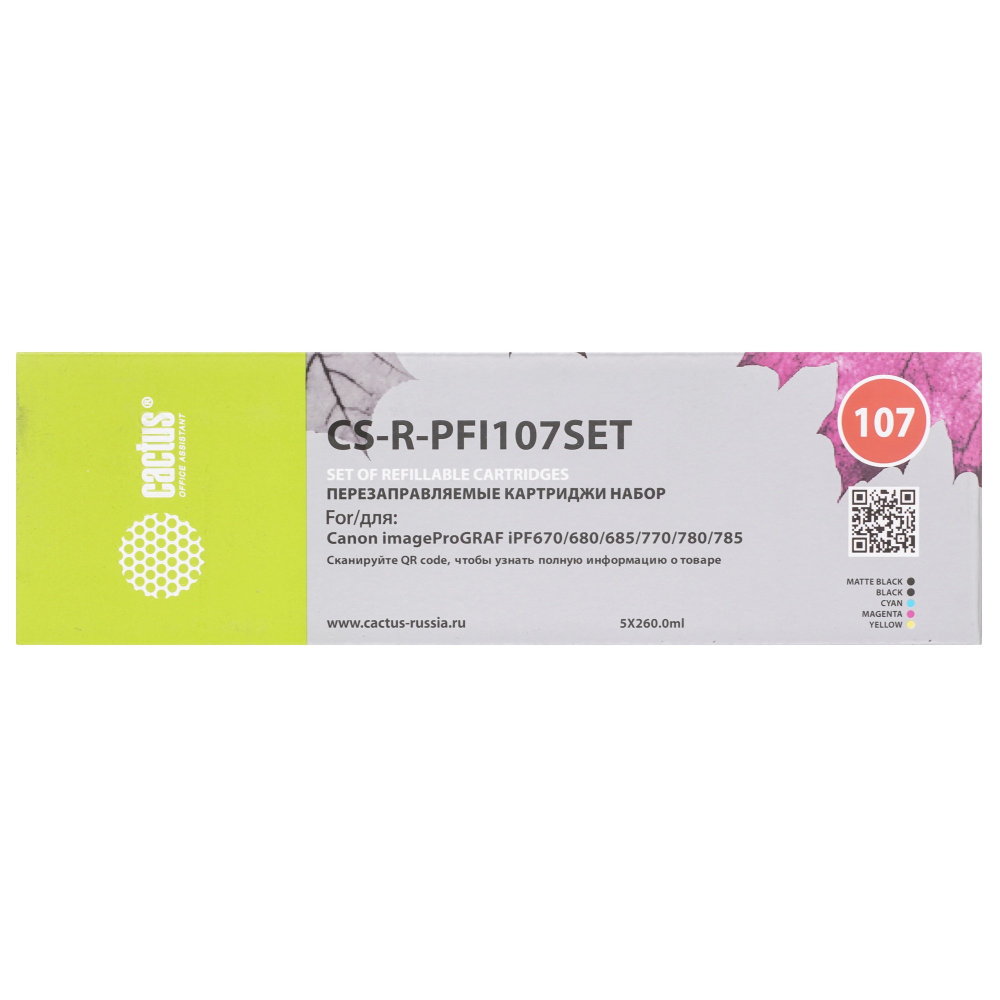 Картридж перезаправляемый струйный Cactus CS-R-PFI107SET набор 5шт.упак. для Canon imageProGRAF iPF670/680/685/770/780/785 без чипа
