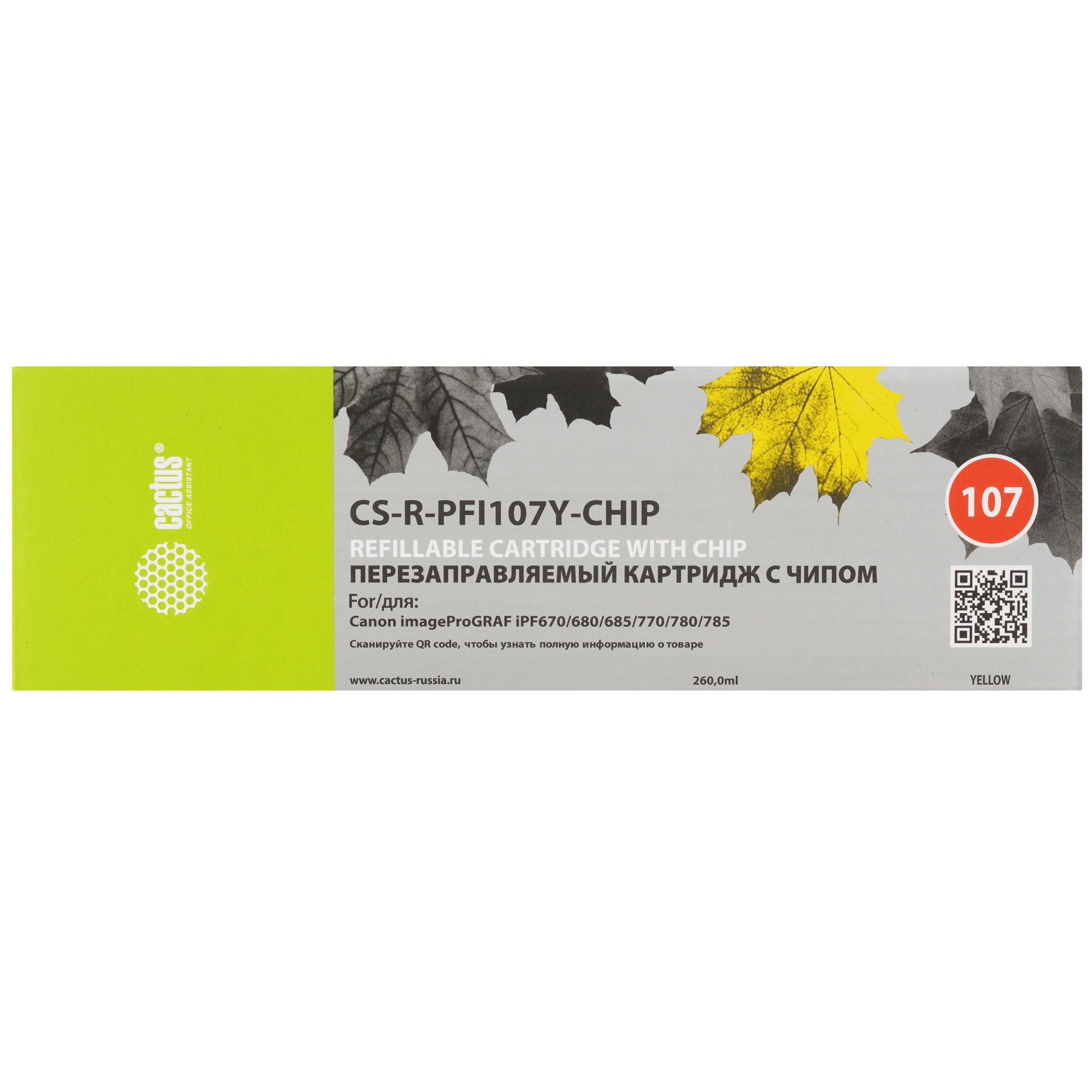 Картридж перезаправляемый струйный Cactus CS-R-PFI107Y-CHIP желтый (260мл) для Canon imageProGRAF iPF670/680/685/770/780/785 с чипом