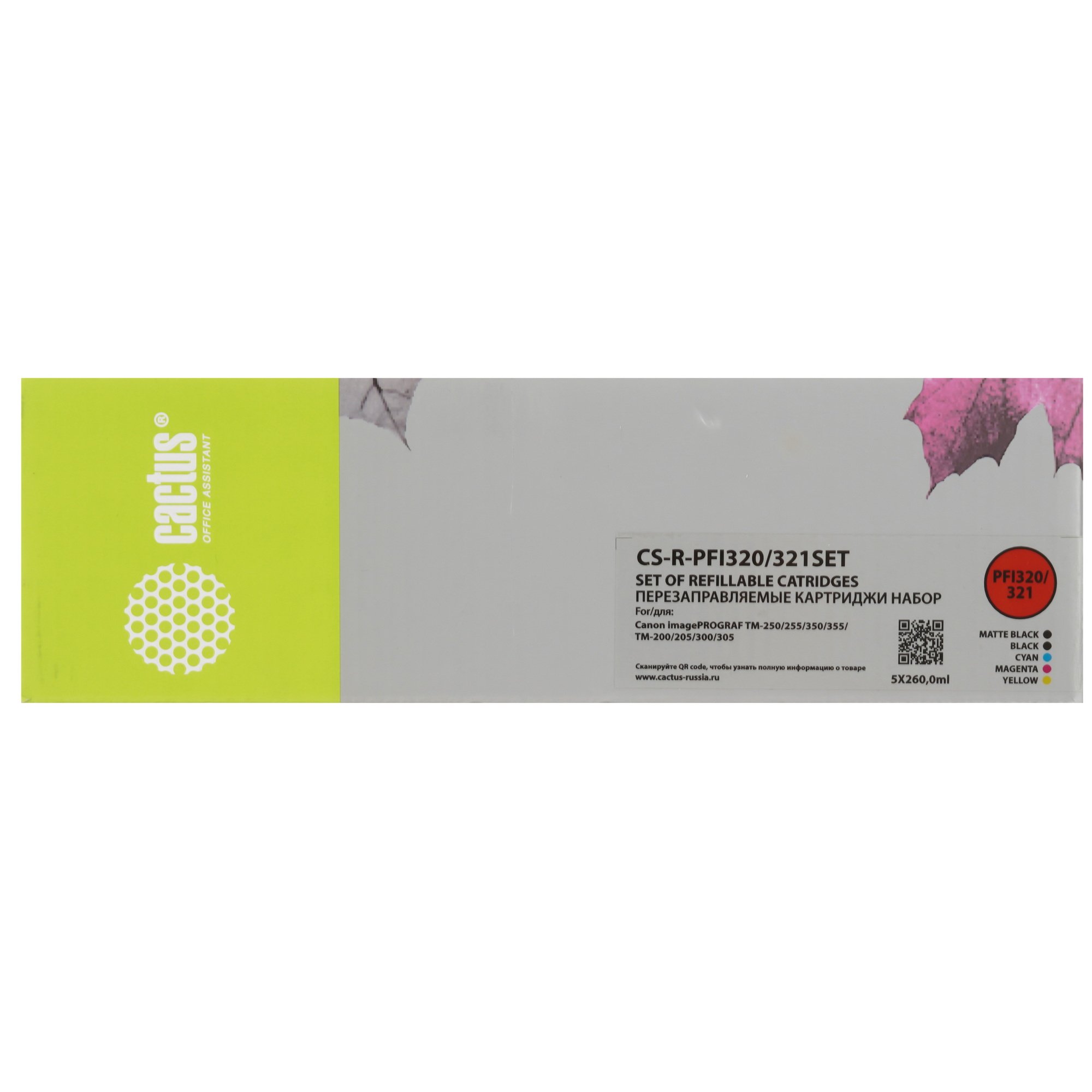 Картридж перезаправляемый струйный Cactus CS-R-PFI320/321SET набор 5шт.упак. для Canon imagePROGRAF TM-200/200MFP/205/300/300MFP/305/250/255/350/355 с чипом