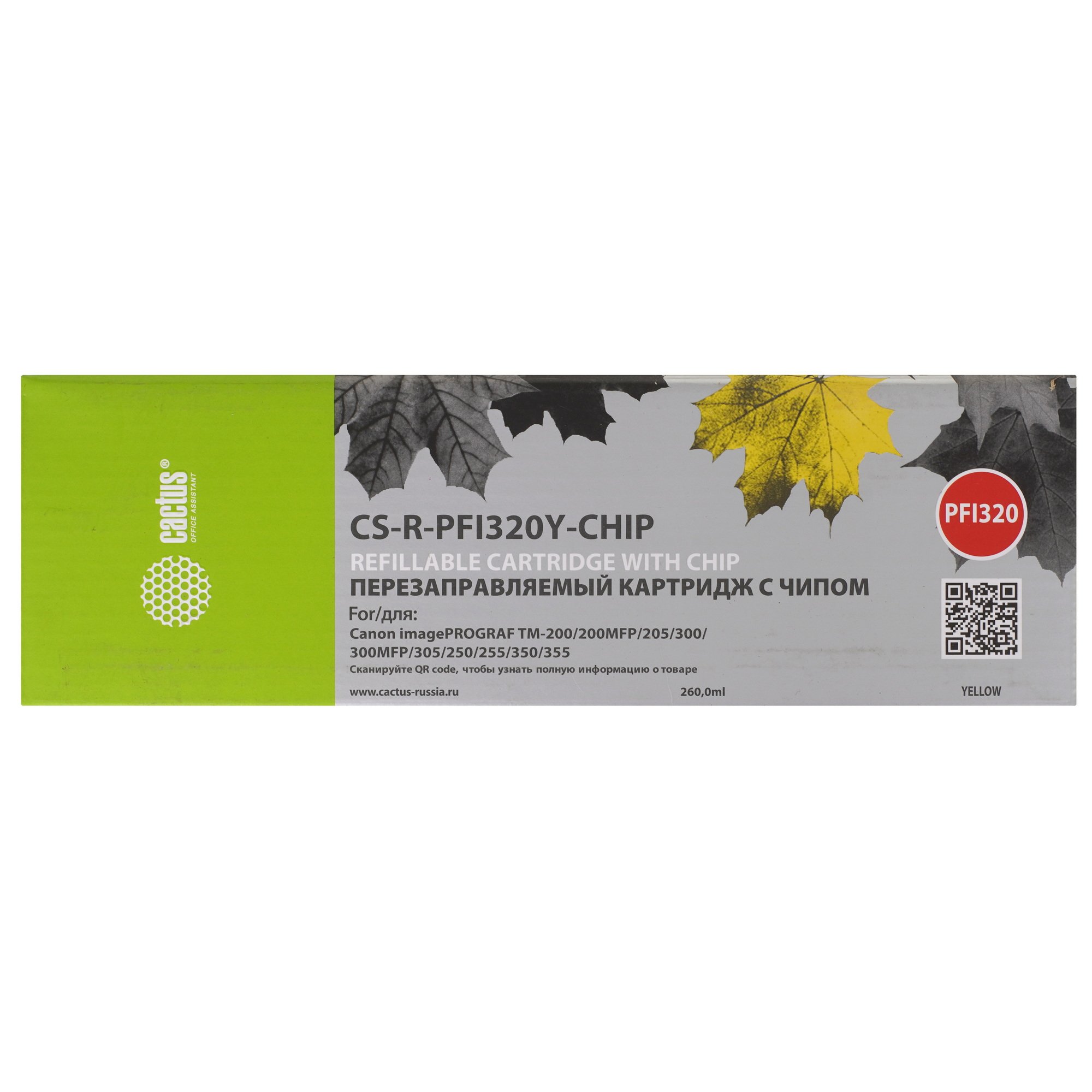 Картридж струйный Cactus CS-R-PFI320Y-CHIP PFI-320Y желтый (260мл) для Canon imagePROGRAF TM-200/200MFP/205/300/300MFP/305/250/255/350/355 с чипом