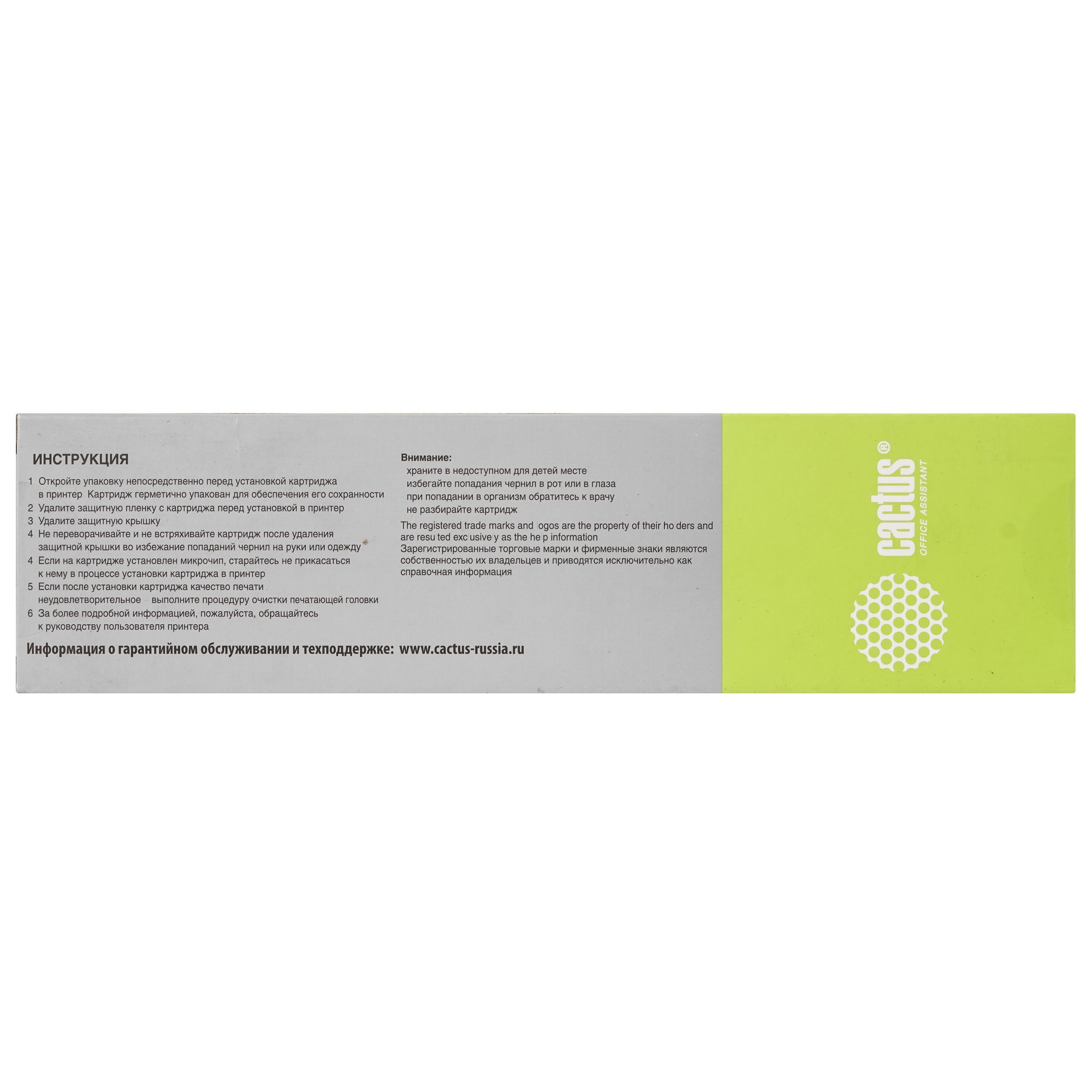 Cactus CS-T0B29A наполнен чернилами на пигментной основе, которые обеспечивают насыщенность желтого оттенка и четкость символов. Универсальный характер позволяет использовать аксессуар при получении листовок, плакатов, постеров и другой продукции. Выполненные копии устойчивы к выгоранию под воздействием солнечных лучей.