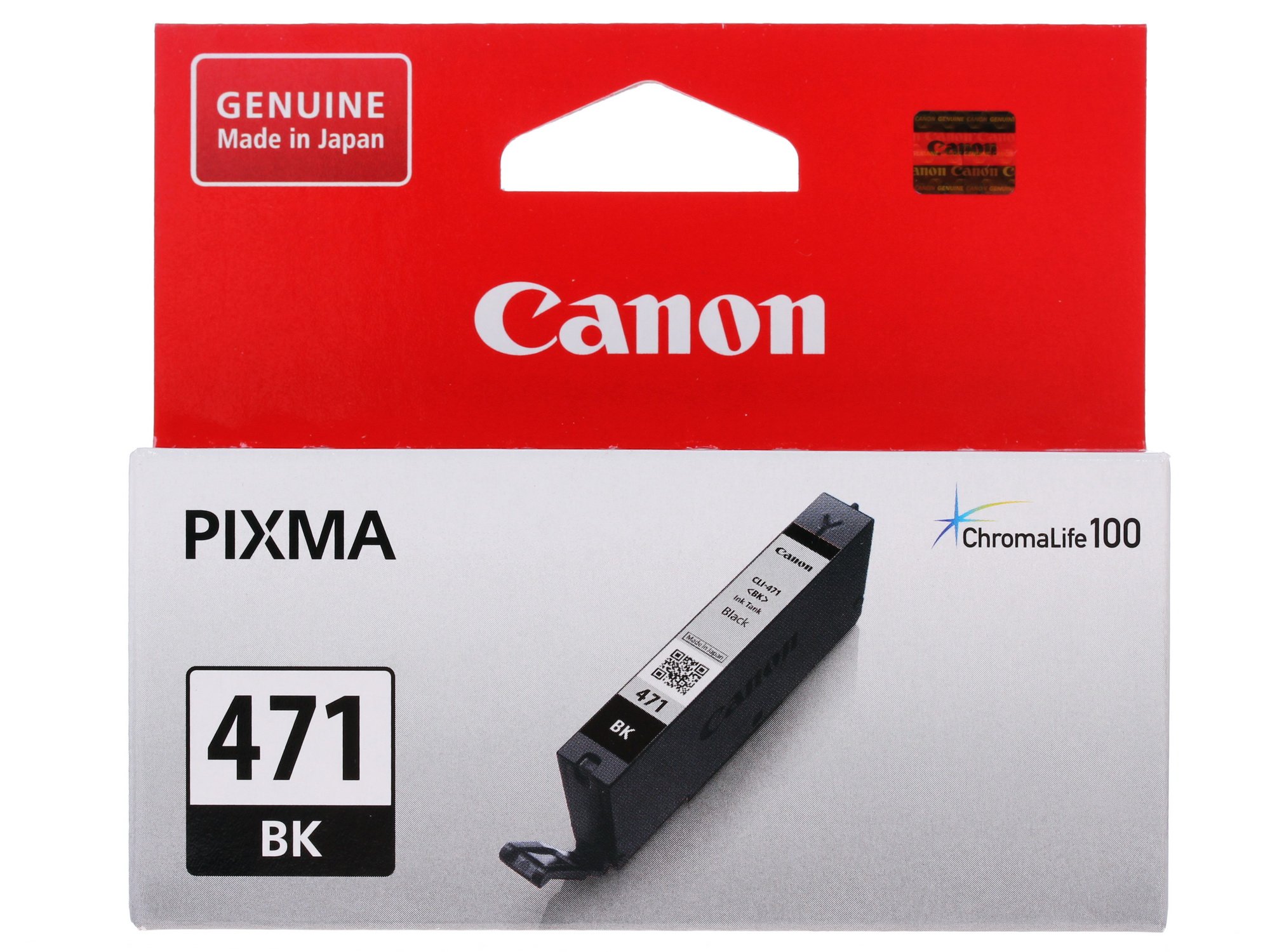 Картридж струйный Canon CLI-471BK наполнен оригинальными чернилами от бренда Canon. Цвет - черный, вставляется в слот для черно-белой печати.