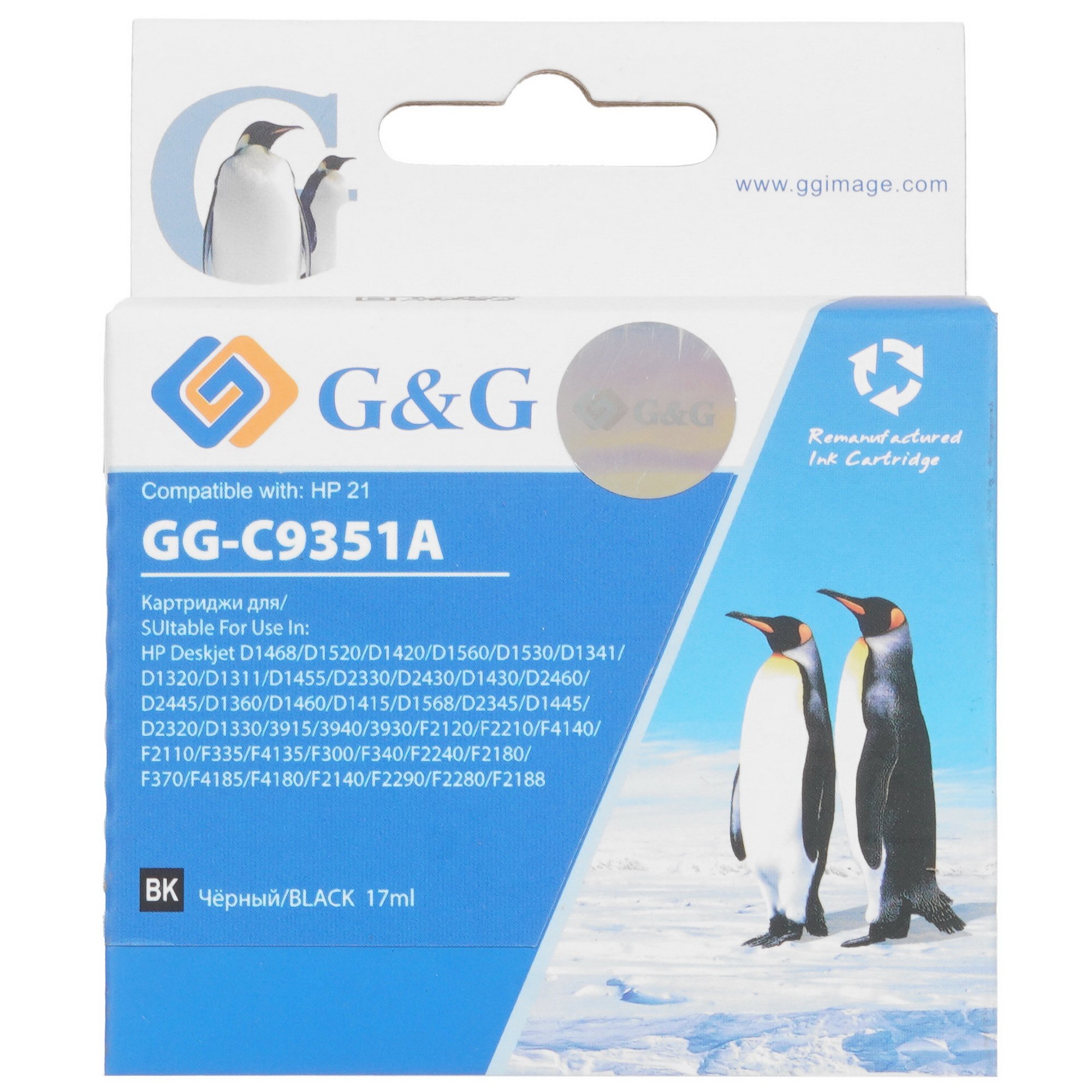 Картридж струйный G&G GG-C9351A черный (17мл) для HP DJ 3920/3940/D1360/D1460/D1470/D1560/D2330/D2360/D2430/D2460/F370/F375/F380/F2180/F2187/F2224/F2280/F2290/F4140/F4172/F4180/F4190