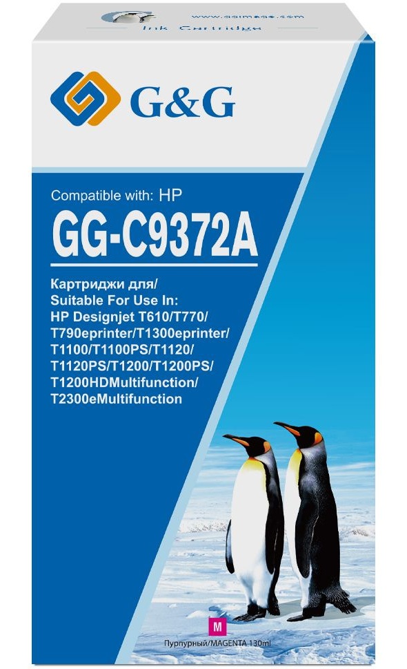Картридж струйный G&G GG-C9372A пурпурный (130 мл) для HP Designjet T610, T770, T790eprinter, T1300eprinter, T1100, T1100PS, T1120, T1120PS, T1200, T1200PS, T1200HDMultifunction, T2300eMultifunction