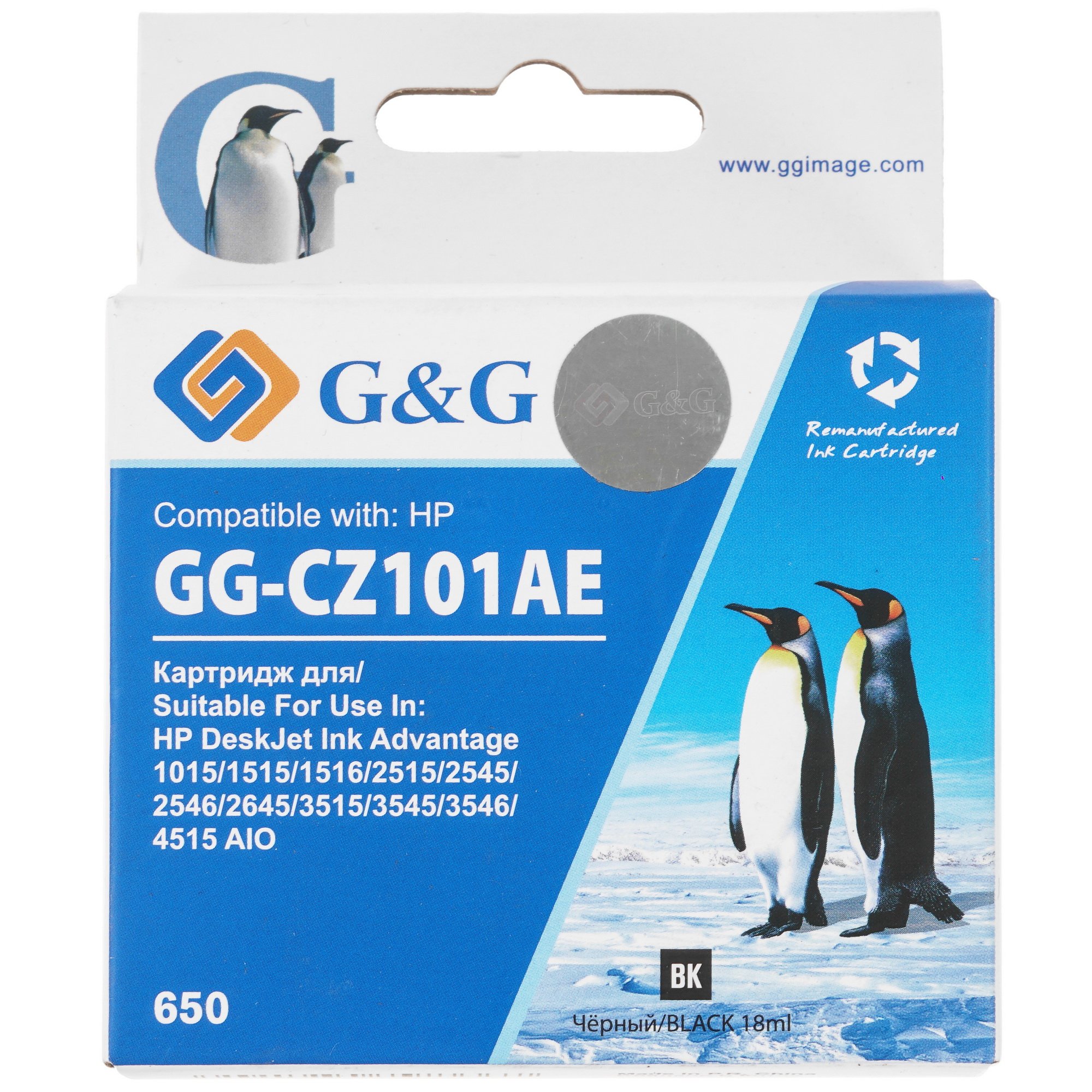 Картридж струйный G&G GG-CZ101AE 650 черный (18мл) для HP DeskJet 1010/10151515/1516
