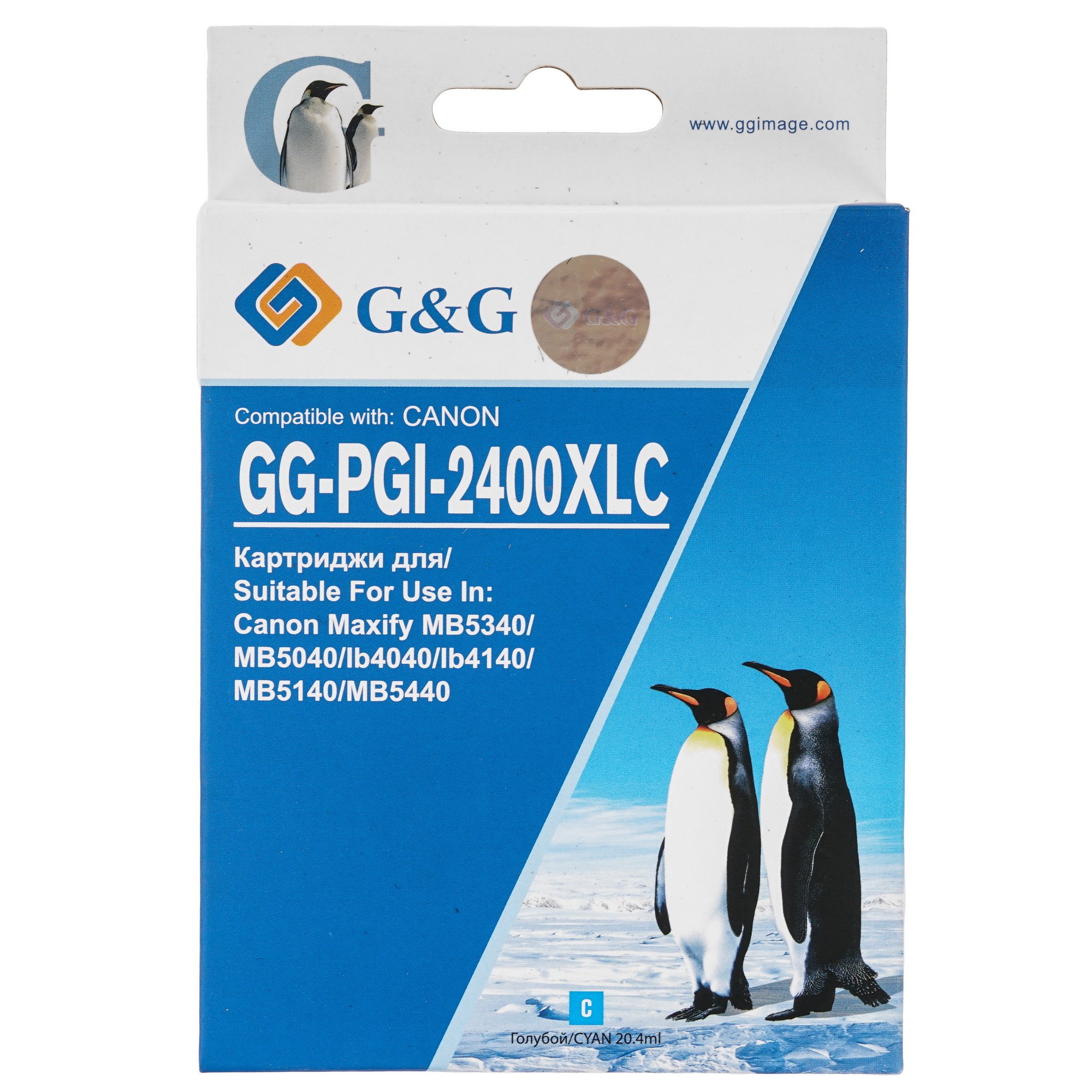 Картридж струйный G&G GG-PGI-2400XLC (PGI-2400XL C) голубой (20.4 мл) для Canon Maxify iB4040/iB4140/МВ5040/MB5140/МВ5340/MB5440