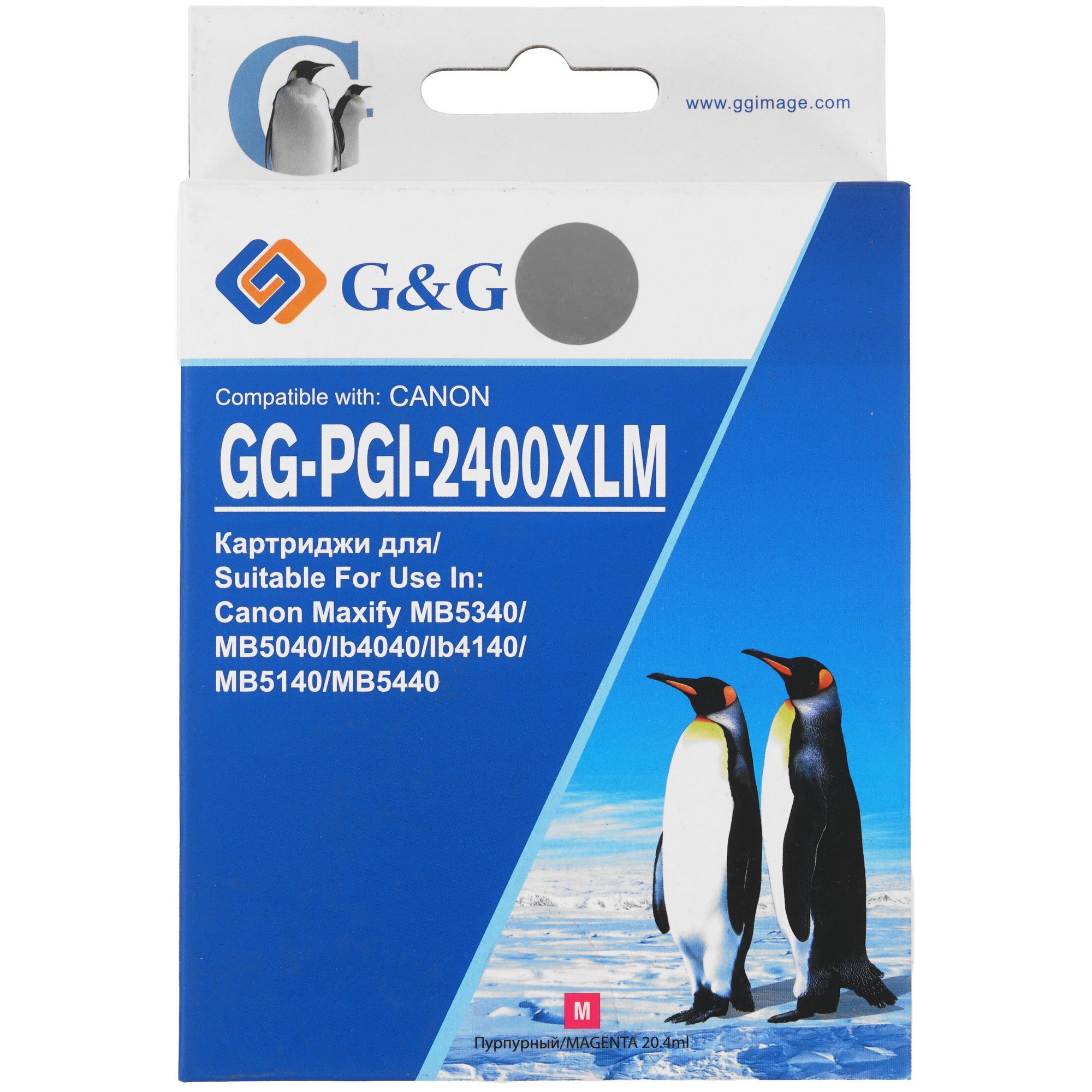 Картридж G&G GG-PGI-2400XLM – совместимый расходный материал для струйных принтеров и многофункциональных устройств Canon. Изделие содержит 20.4 мл пурпурных чернил. Картридж G&G GG-PGI-2400XLM подходит для 6 моделей МФУ и принтеров – Canon MAXIFY MB5040, Canon MAXIFY MB5140, Canon MAXIFY MB5340, Canon MAXIFY MB5440, Canon MAXIFY iB4040 и Canon MAXIFY iB4140. Расходный материал является альтернативой оригинальному картриджу Canon PGI-2400XL M.