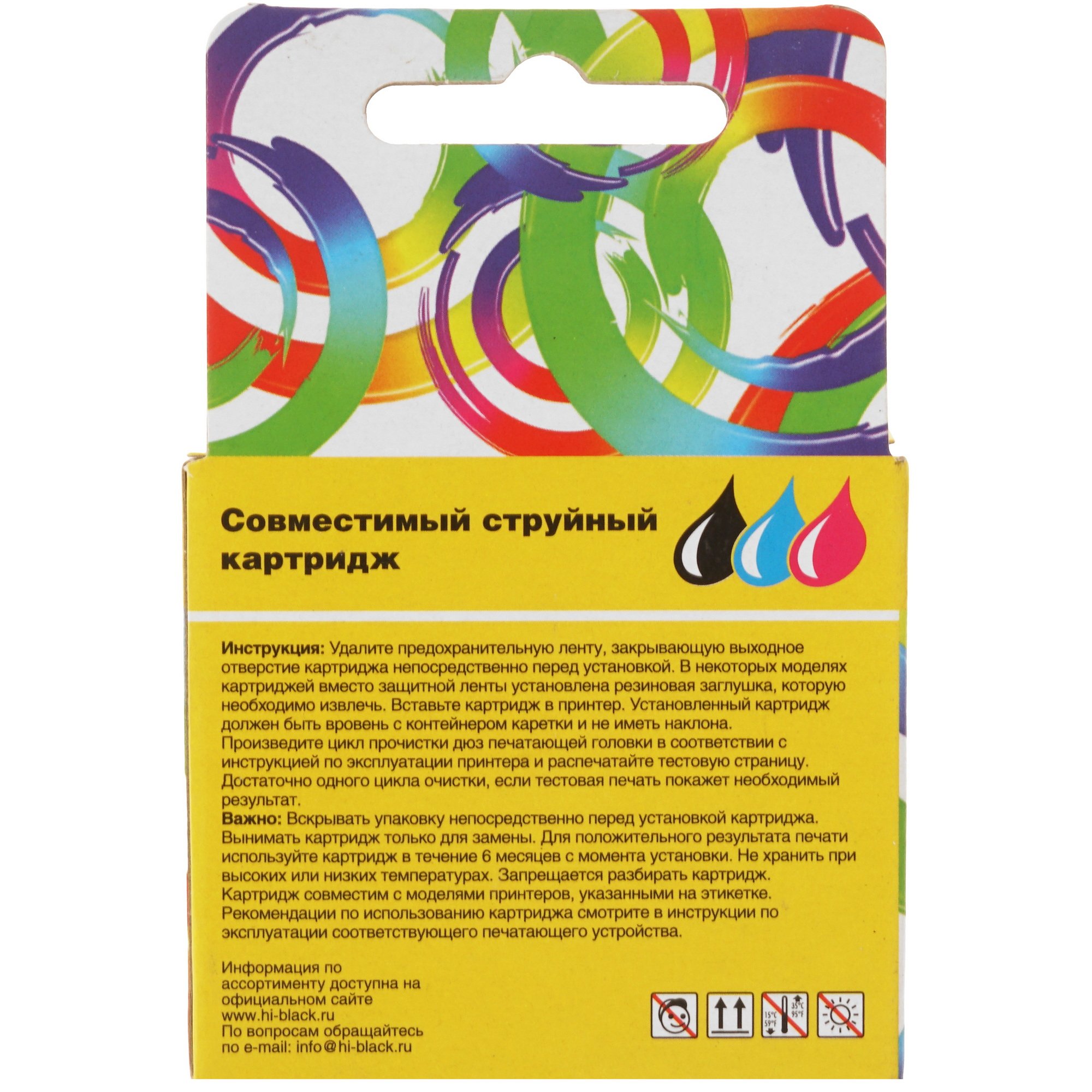 Hi-Black HB-F6V19AE выполнен в герметичном корпусе для защиты от рассыпания краски. Перед установкой обязательно следует снять защитную пленку. После чего картридж нельзя переворачивать и встряхивать. Струйный картридж с ресурсом 480 страниц можно использовать для любительской и профессиональной печати текста и изображений.