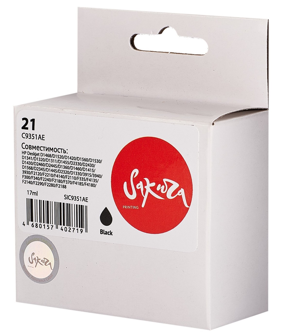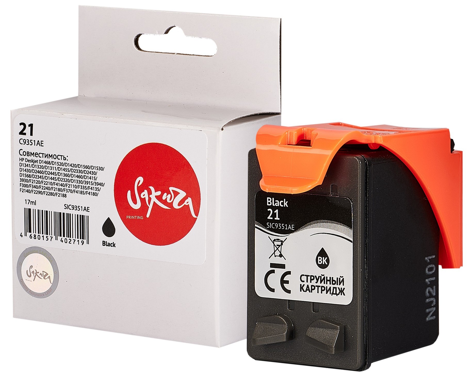 Картридж Sakura C9351AE (№21 Black) имеет объем 17 мл. Он гарантирует стабильную и бесперебойную работу техники на протяжении всего ресурса службы. Конструкция картриджа делает удобным процесс установки и замены после использования.