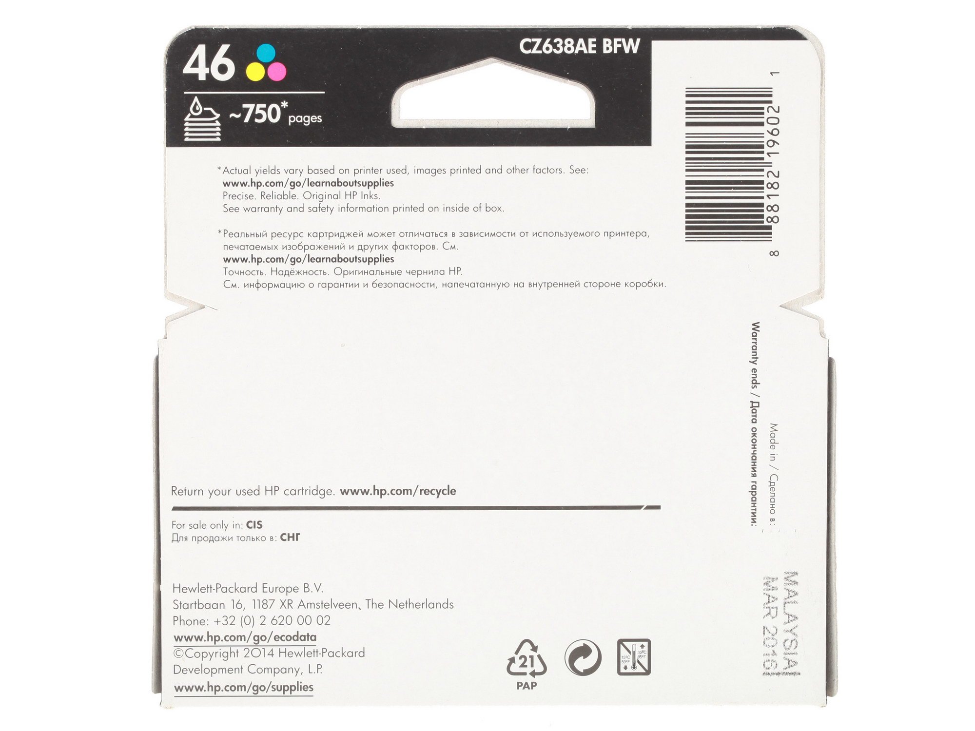 Используя струйный картридж HP 46, пользователь сможет осуществлять профессиональную высококачественную печать текстовых документов и фотографий. Долговечность работы данного устройства позволяет отпечатывать около 750 цветных страниц без необходимости замены расходного атрибута. Документы, отпечатанные с помощью картриджа HP 46, отличаются высоким качеством, а их цвет сохраняется на протяжении целых десятилетий. Разработчики устройства заботятся об экологии: струйные картриджи HP на 60 % состоят из переработанных материалов.