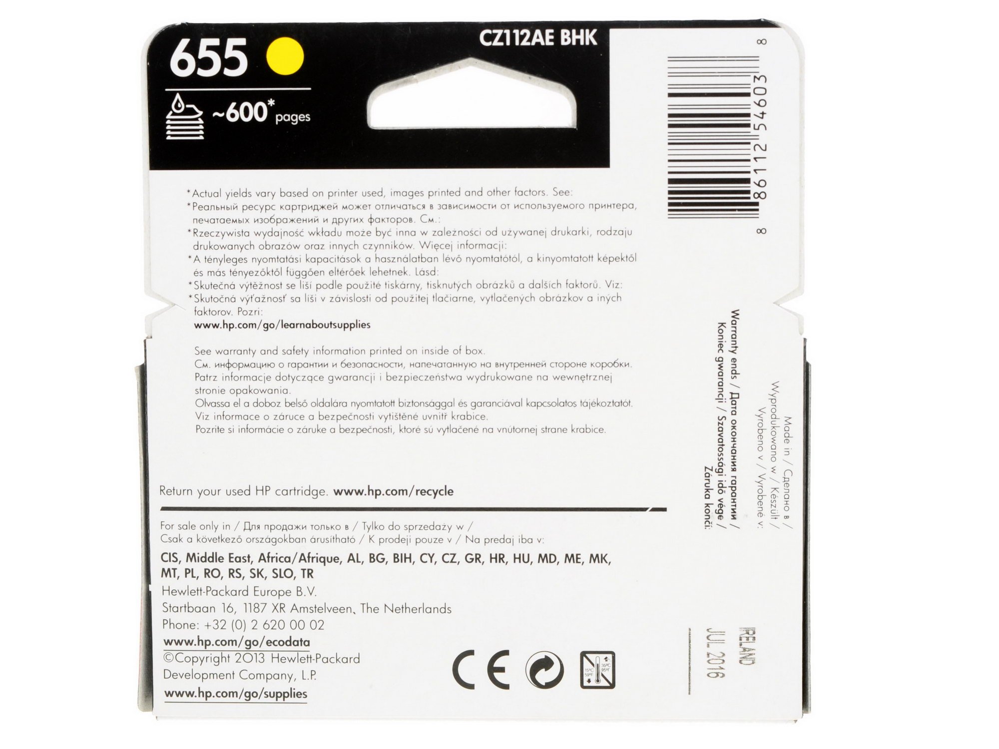 Картридж HP 655 (CZ112AE) подходит для принтеров HP Deskjet Ink Advantage 3525, 4615, 4625, H5525, 6525.