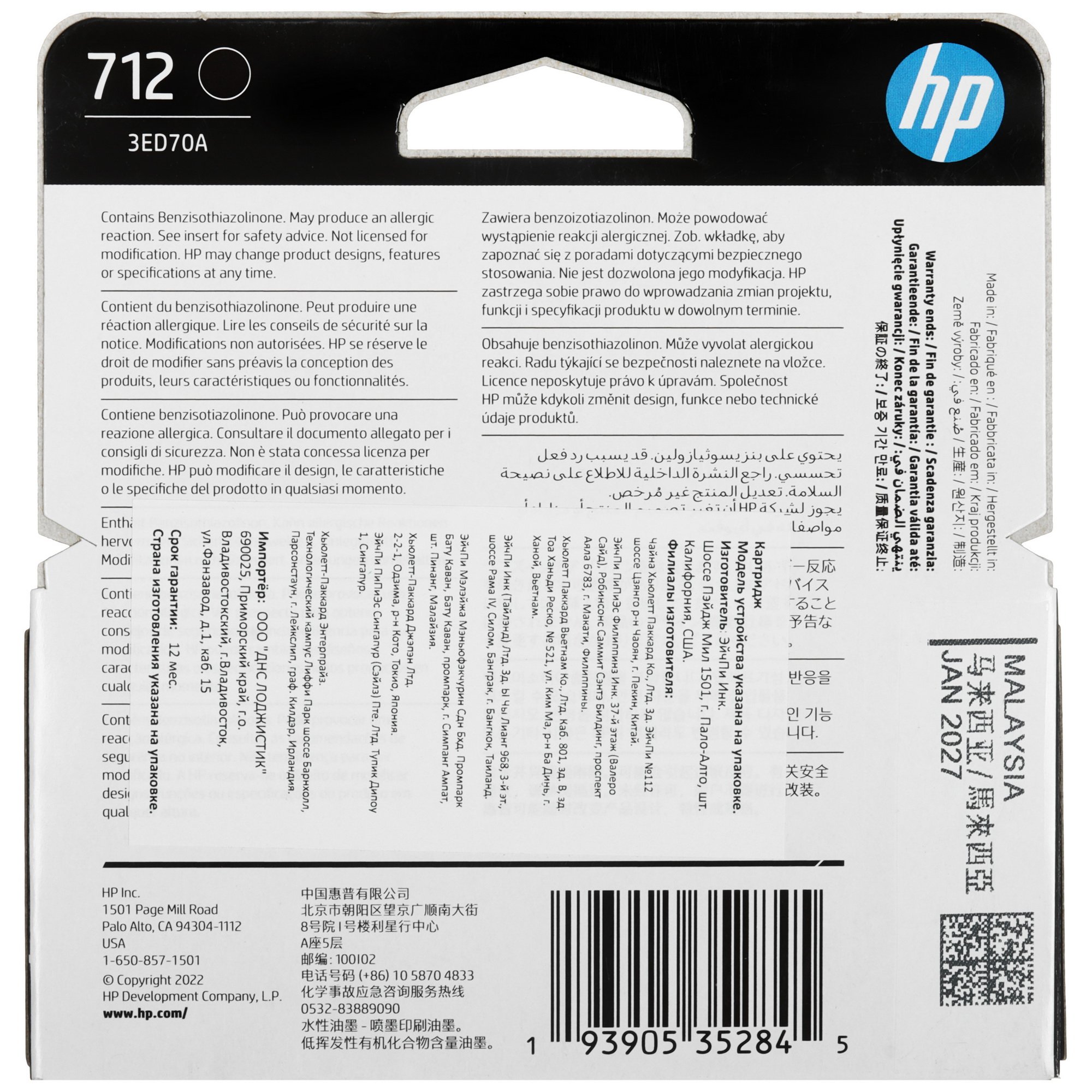 Оригинальный струйный картридж HP 712 (3ED70A) подходит для принтеров HP DesignJet T200, T210,T230,T250, T630,T650.