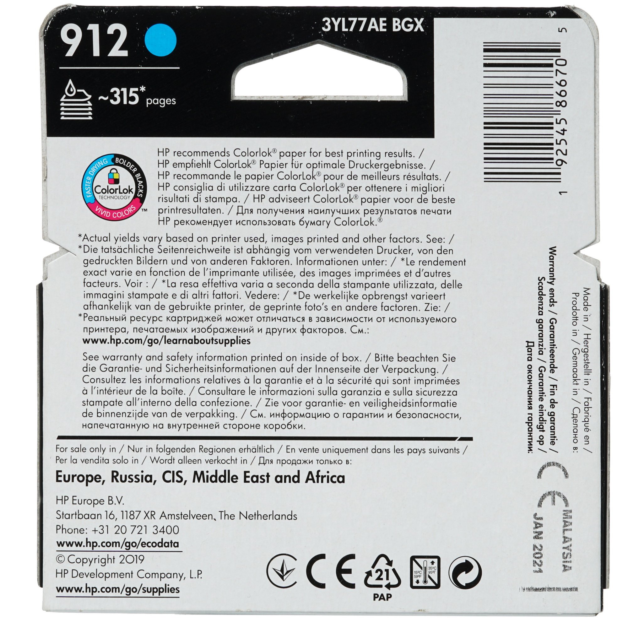 Картридж струйный HP 912 3YL77AE голубой (315стр.) для HP OfficeJet 801x/802x