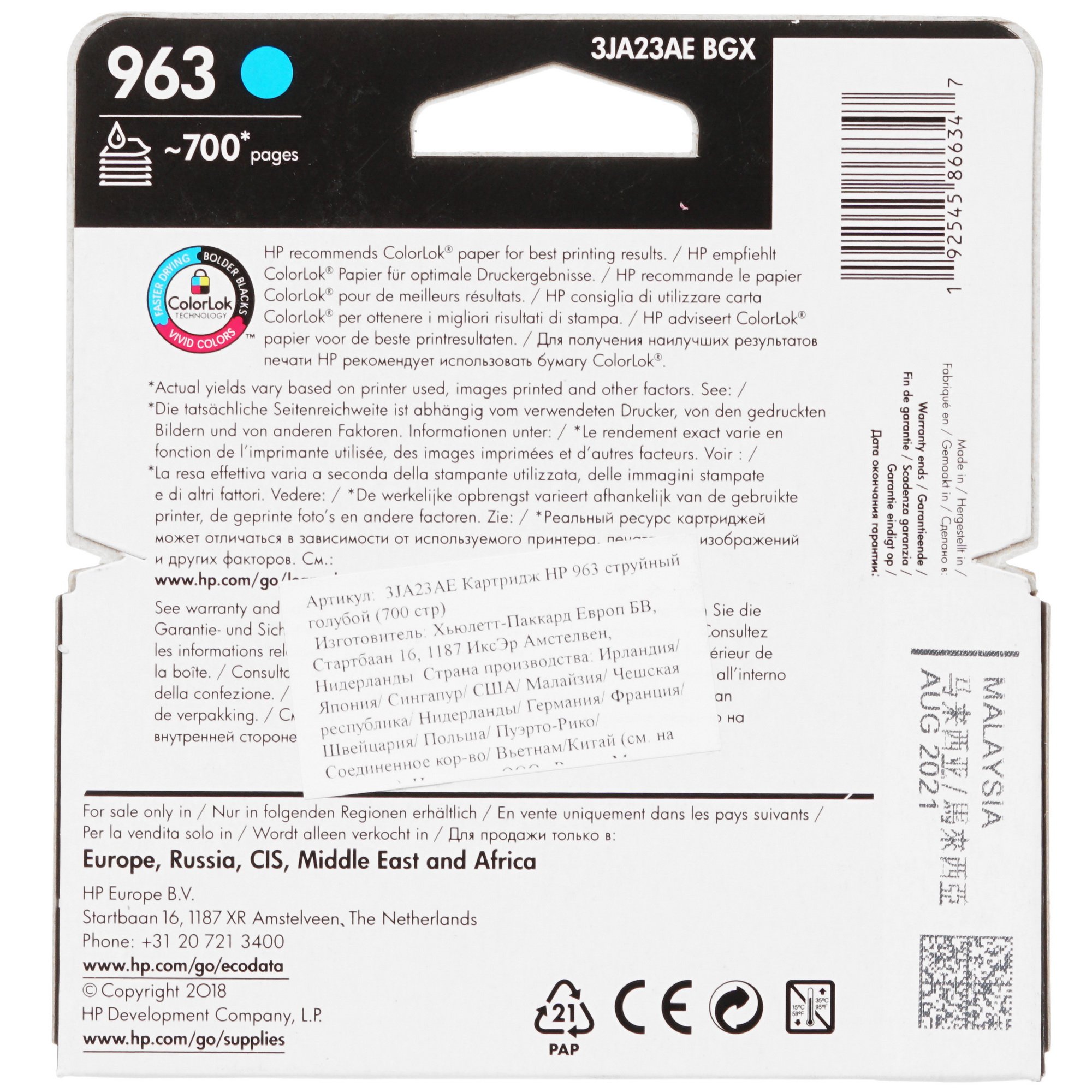 Картридж струйный HP 963 (3JA23AE) за счет своей конструкции отличается высокой надежностью и обеспечит стабильную работу на весь период эксплуатации. Модель полностью совместима с широким рядом принтеров HP OfficeJet Pro. Для сохранения заводских свойств изделие необходимо хранить в сухом и недоступном для солнечных лучей месте. Картридж поставляется в картонном боксе.