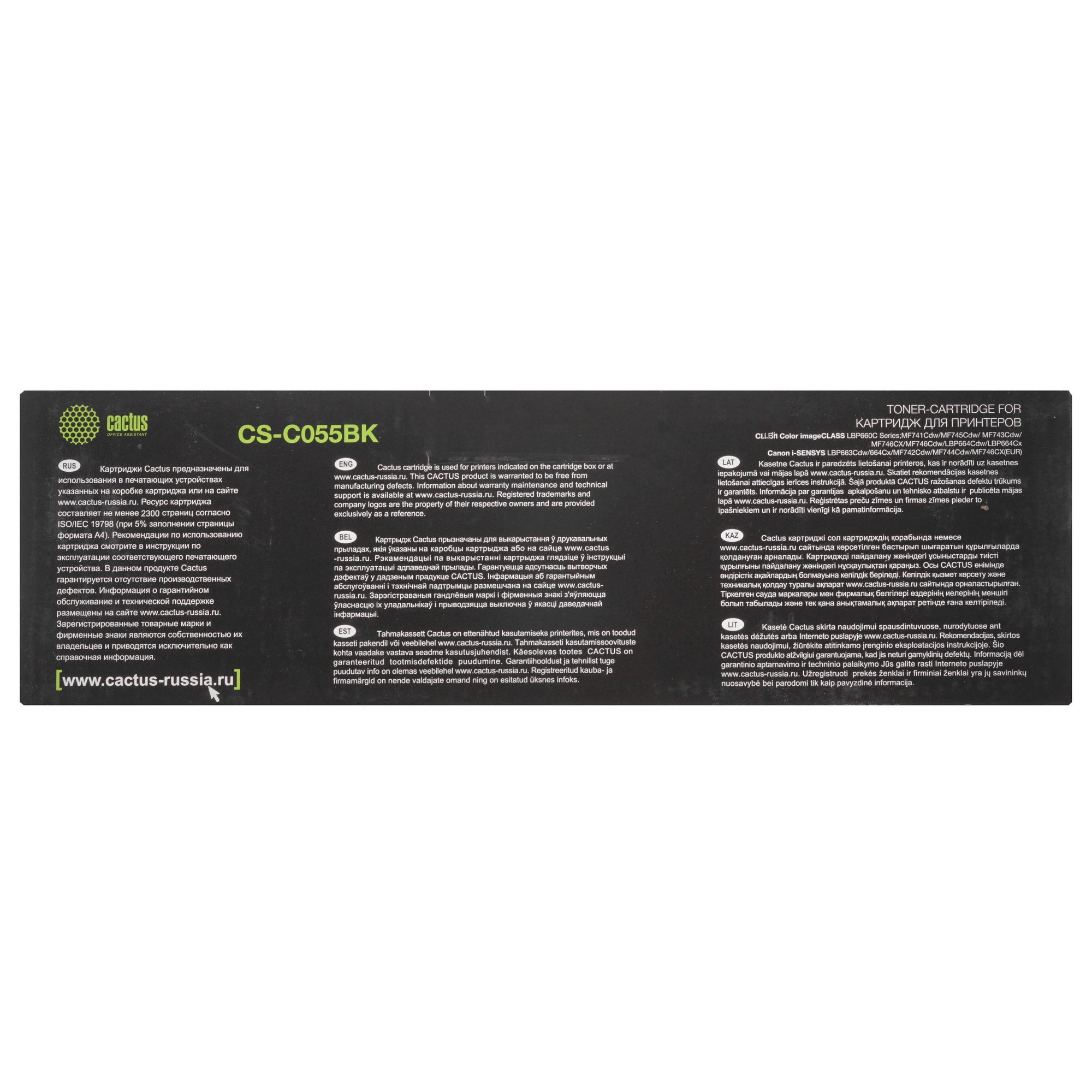 Картридж лазерный Cactus CS-C055BK черный (2300 стр.) для Canon LBP663Cdw, LBP664Cx, MF746Cx, MF742Cdw, MF744Cdw
