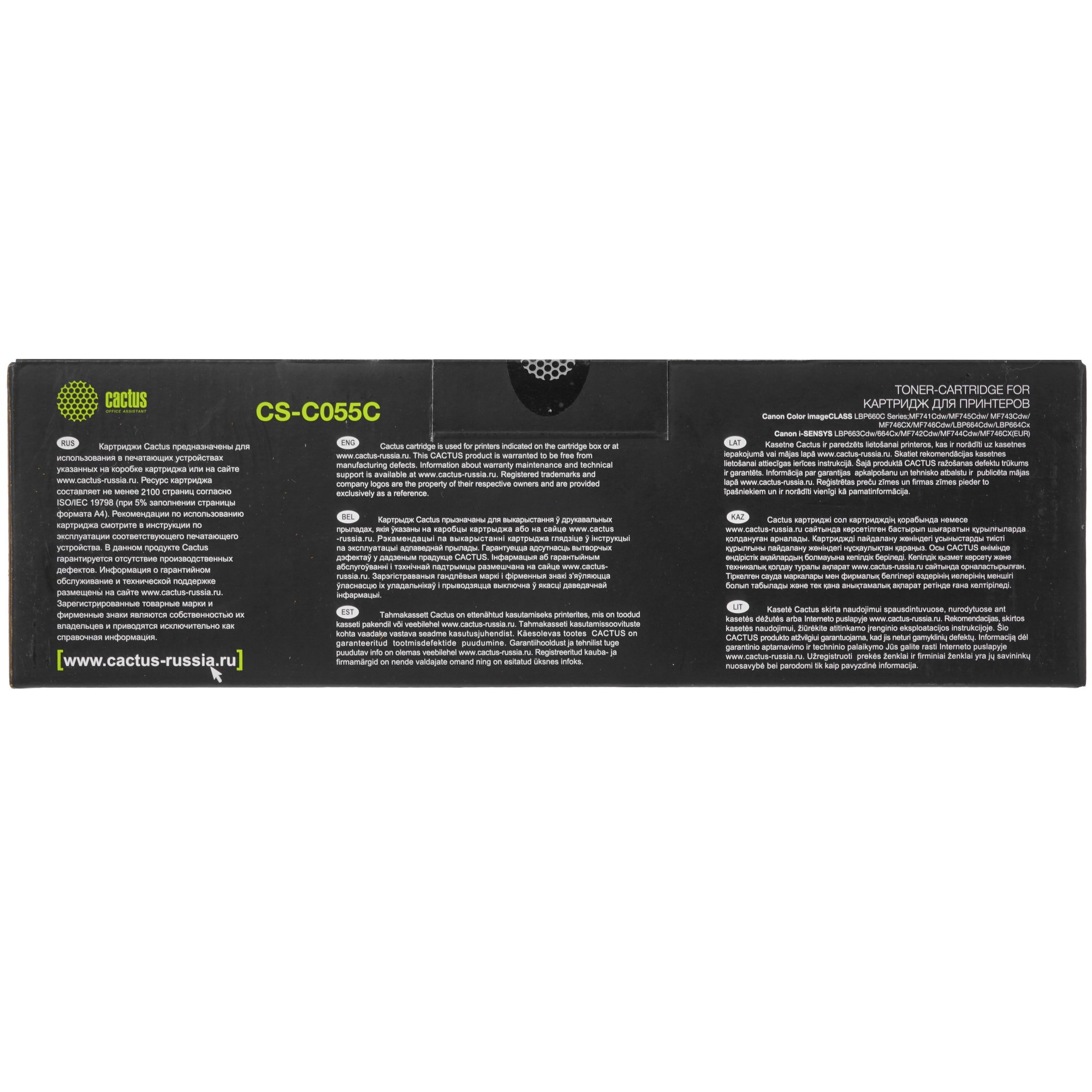 Картридж лазерный Cactus CS-C055C голубой (2100 стр.) для Canon LBP663Cdw, LBP664Cx, MF746Cx, MF742Cdw, MF744Cdw