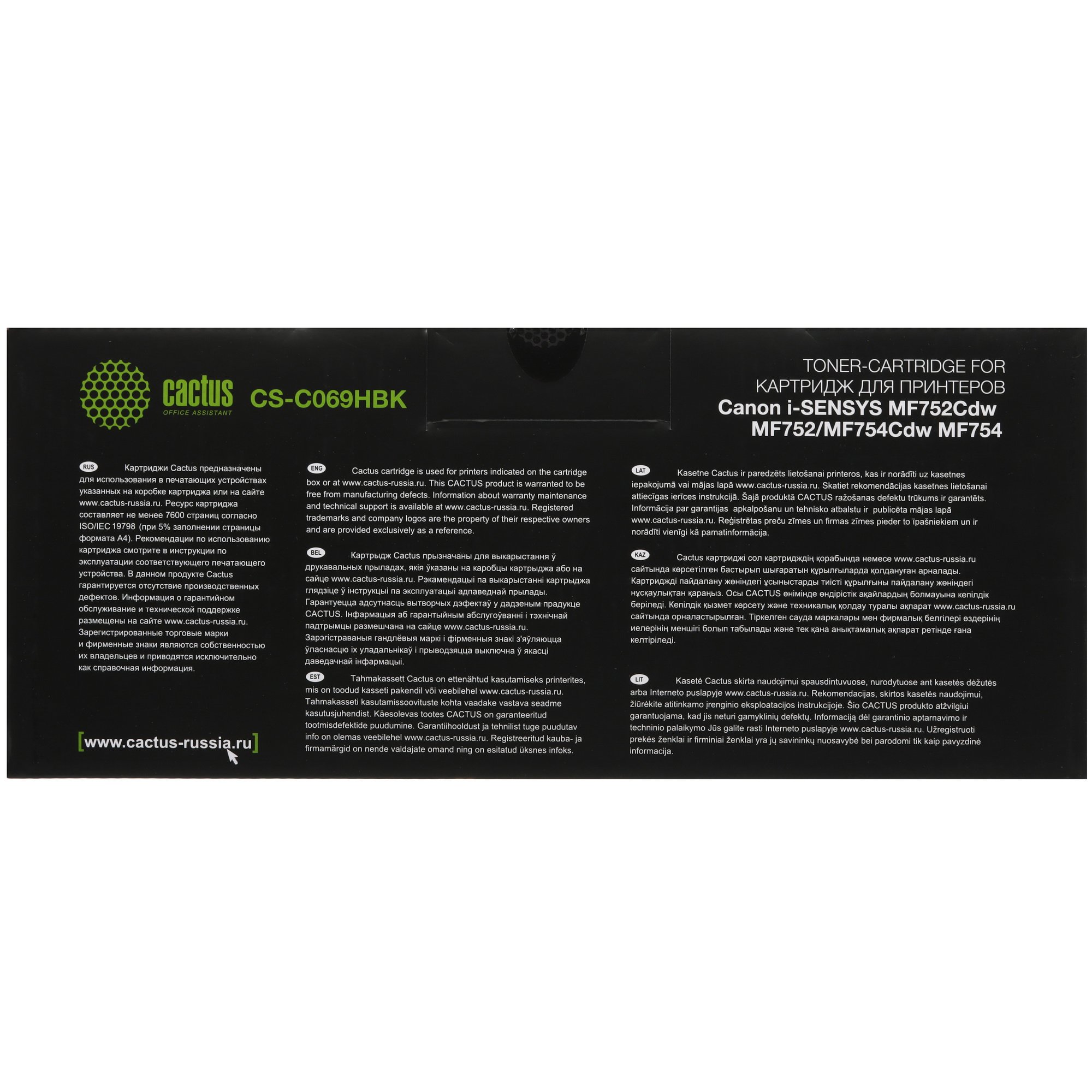 Картридж лазерный Cactus CS-C069HBK 069H черный (7600стр.) для Canon i-SENSYS MF752Cdw MF752/MF754Cdw MF754