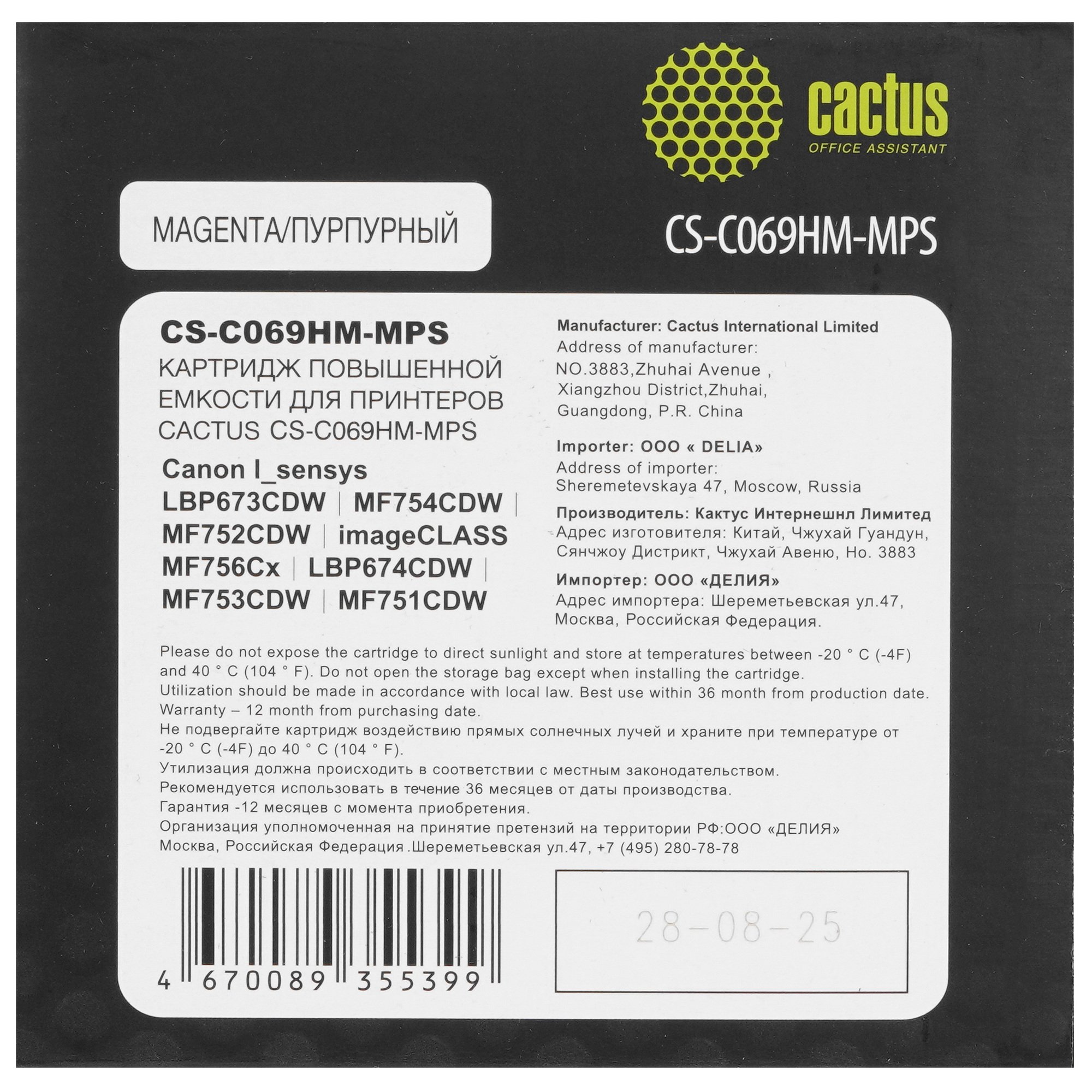 Картридж лазерный Cactus CS-C069HM-MPS 069HM пурпурный (9000стр.) для Canon I sensys LBP673CDW/MF754CDW/MF752CDW/imageCLASS MF756Cx/LBP674CDW/MF753CDW/MF751CDW