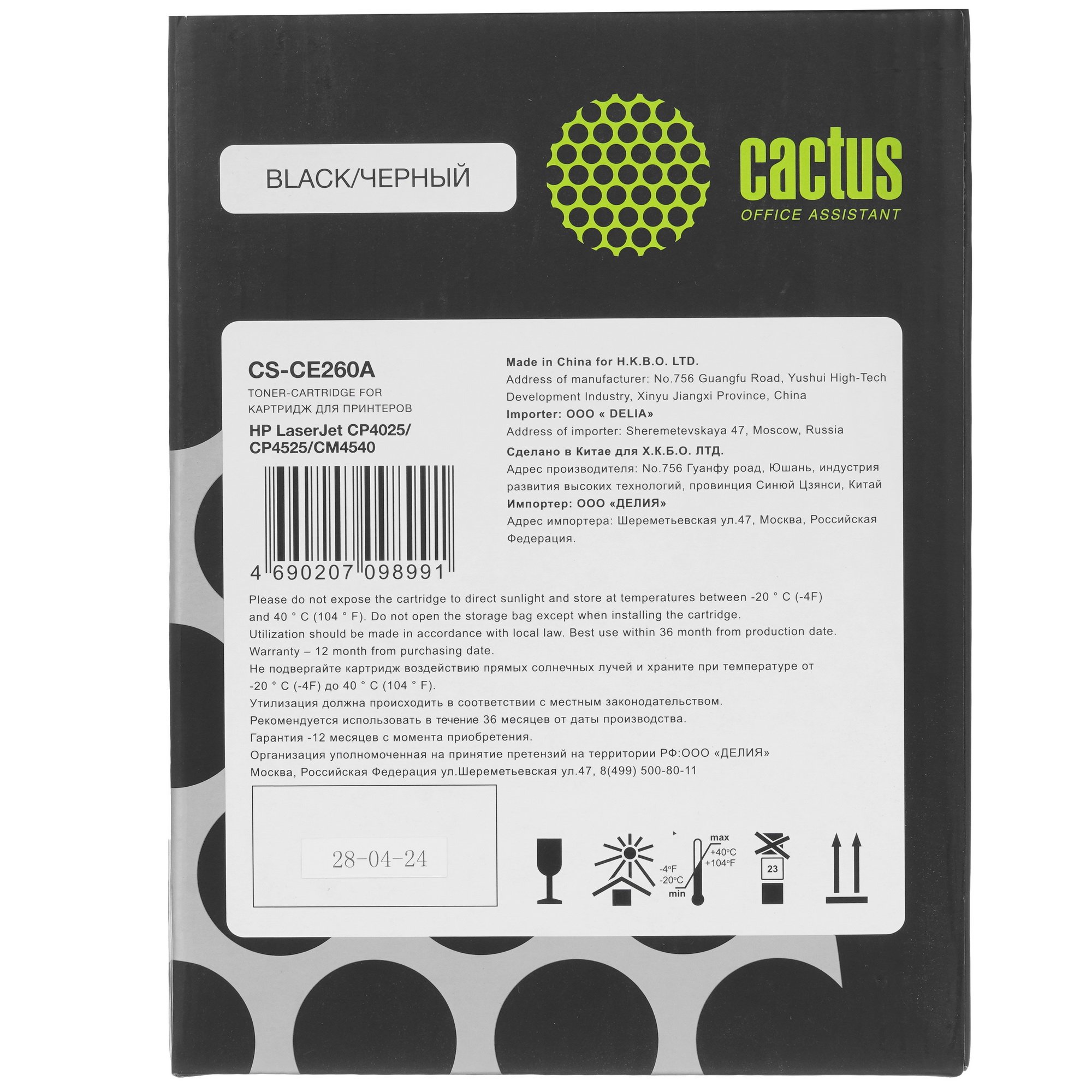 Картридж лазерный Cactus CS-CE260A черный (8500 стр.) для HP Сolor LaserJet CP4025/CP4525/CM4540