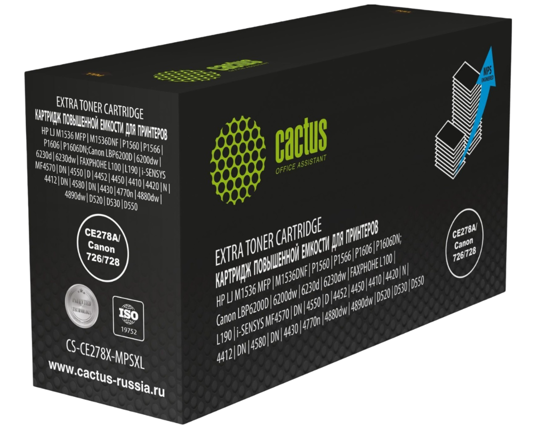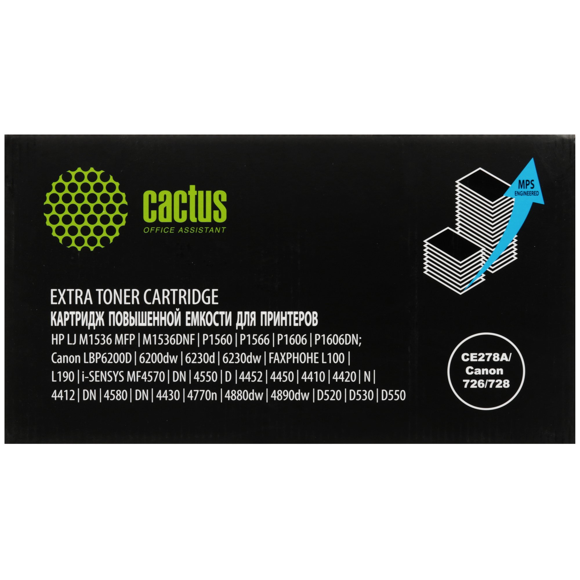 Картридж лазерный Cactus CS-CE278X-MPSXL CE278A/Canon 726/728 черный (8000стр.) для HP LJ M1536 MFP/M1536DNF/P1560/P1566/P1606/P1606DN;Canon LBP6200D/6200dw/6230d/6230dw/FAXPHOHE L100/L190/i-SENSYS MF4570/DN/4550/D/4452/4450/4410/4420/N/4412/DN/4580/DN/44