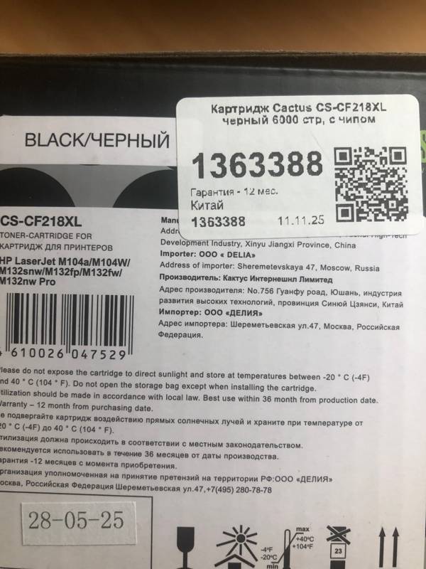 Картридж лазерный Cactus CS-CF218XL - это представитель совместимых расходников для лазерных принтеров, в котором фирмой Cactus гарантируется отсутствие производственных дефектов. Модель обладает ресурсом в 6000 страниц (при 5% заполнении страницы формата A4), что делает ее приобретение наиболее оптимальным для домашнего принтера. По своей конструкции расходник идентичен оригинальному картриджу HP 18XL CF218XL, что позволит избежать нестабильной работы или снижения срока службы совместимого с ним принтера.