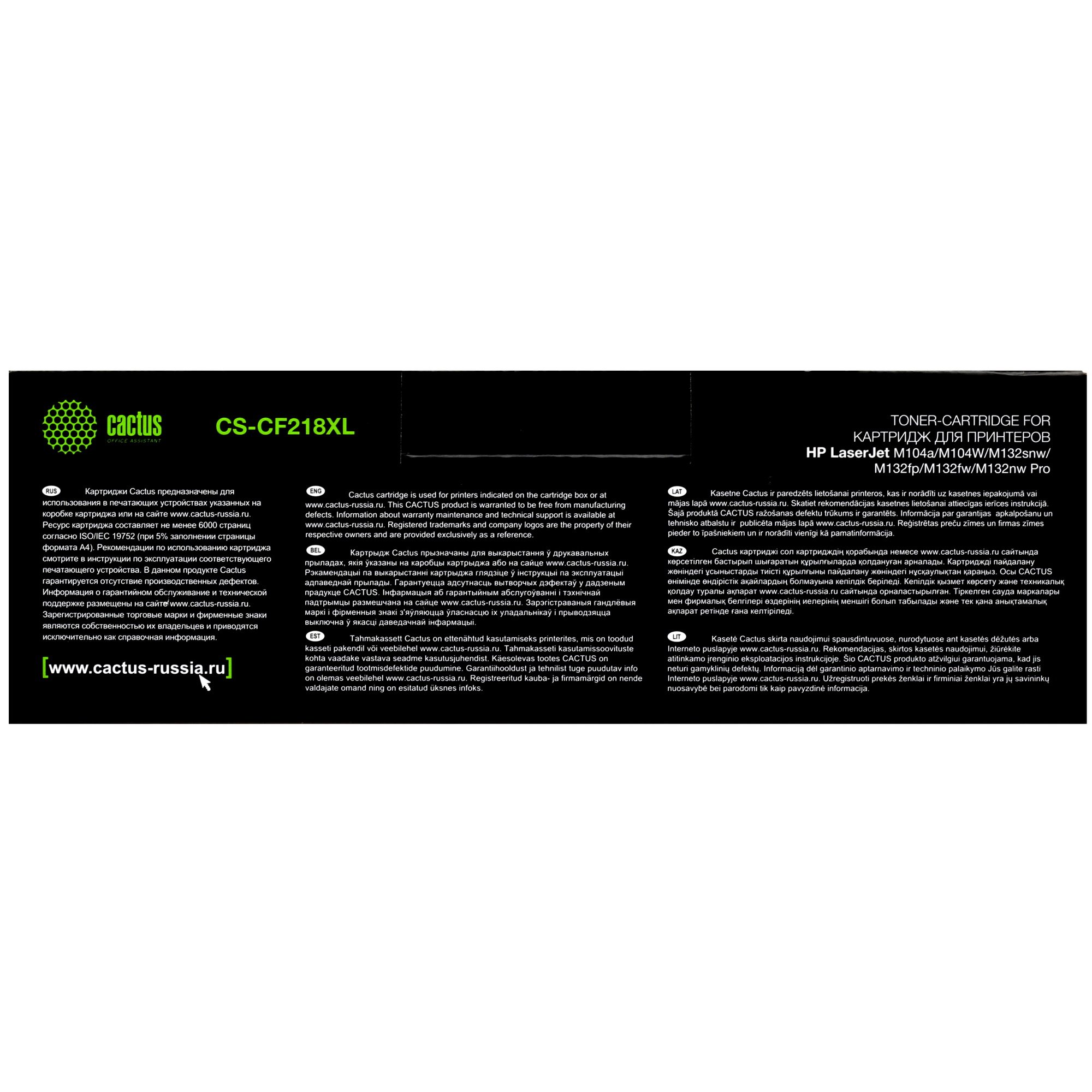 Картридж лазерный Cactus CS-CF218XL черный (6000 стр.) для HP LJ M104/ M132
